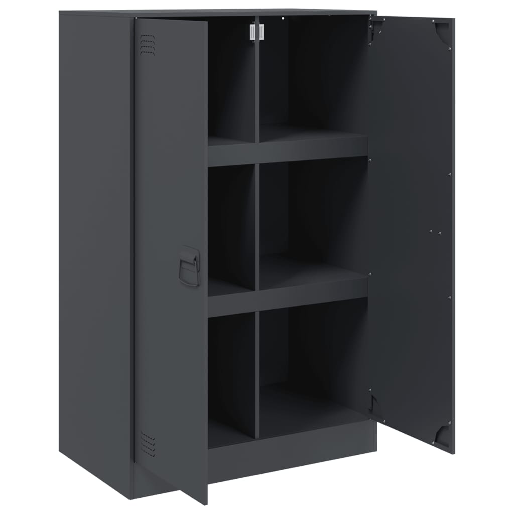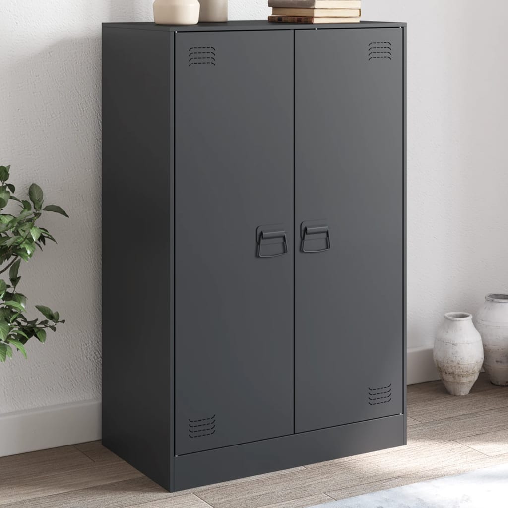 Dieses robuste Sideboard wird mit seinem trendigen und dennoch praktischen Design sicherlich der Mittelpunkt Ihres Wohnzimmers werden. Stabiles Material: Der Rahmen des Sideboards besteht aus kaltgewalztem Stahl. Kaltgewalzter Stahl ist eine Art kohlenstoffarmer Stahl, der im „Kaltwalzverfahren“ hergestellt und bei nahezu normalen Raumtemperaturen verarbeitet wird. Kaltgewalzter Stahl besitzt eine glattere Oberfläche, eine höhere Festigkeit und lässt sich präziser verarbeiten.Reichlich Stauraum: Dieser Schrank bietet praktischen Stauraum für Zeitschriften, Bücher, Bürobedarf, Dokumente und andere Gegenstände, die hier gut geordnet und in Reichweite aufbewahrt werden können.Pflegeleicht: Der Tisch lässt sich mit einem feuchten Tuch leicht reinigen und erfordert wenig Pflege.Praktischer Griff: Das Sideboard ist mit 2 Griffen ausgestattet, die das Öffnen und Schließen des Schranks erleichtern und gleichzeitig zu seiner ansprechenden Optik beitragen. Achtung:Um ein Umkippen zu verhindern, muss dieses Produkt mit einer Wandhalterung (nicht im Lieferumfang enthalten) gesichert werden.
