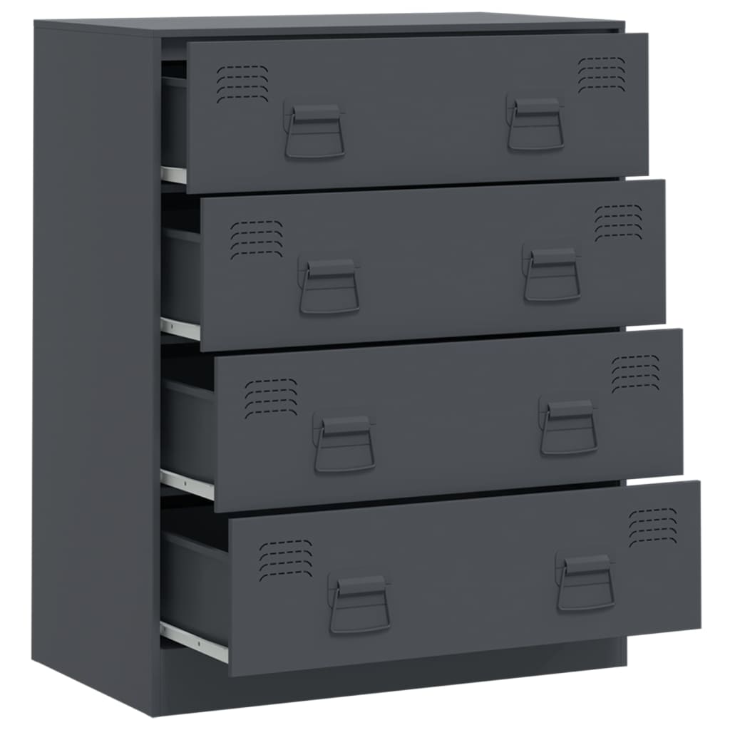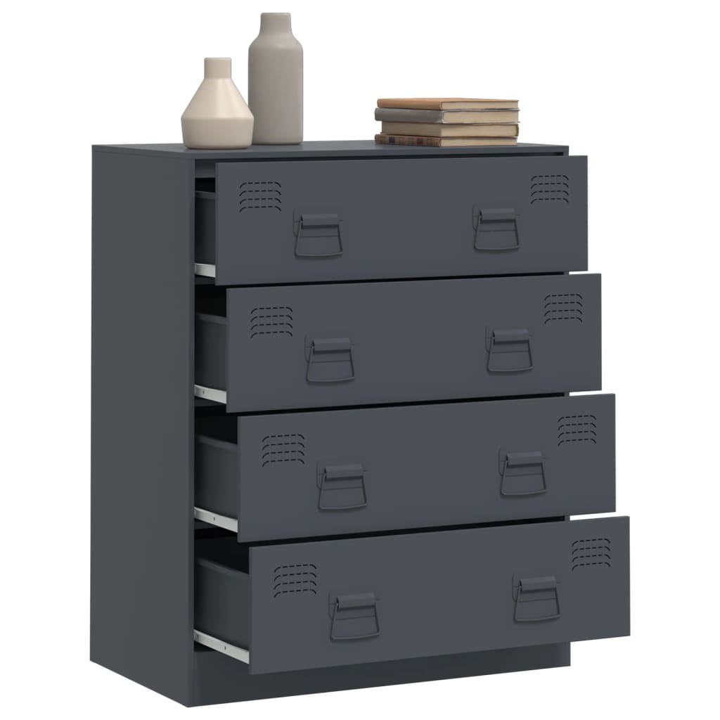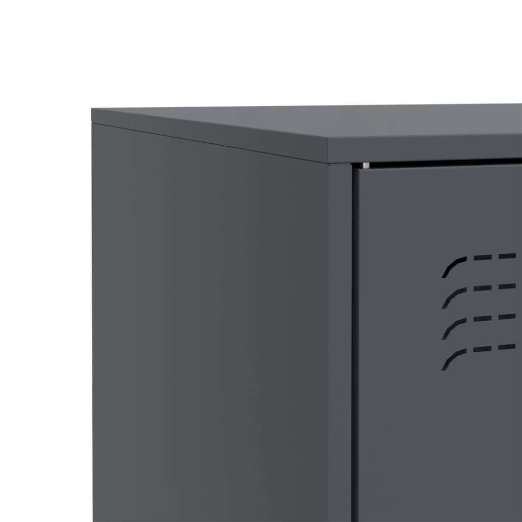 Dieses robuste Sideboard wird mit seinem trendigen und dennoch praktischen Design sicherlich der Mittelpunkt Ihres Wohnzimmers werden. Stabiles Material: Der Rahmen des Sideboards besteht aus kaltgewalztem Stahl. Kaltgewalzter Stahl ist eine Art kohlenstoffarmer Stahl, der im „Kaltwalzverfahren“ hergestellt und bei nahezu normalen Raumtemperaturen verarbeitet wird. Kaltgewalzter Stahl besitzt eine glattere Oberfläche, eine höhere Festigkeit und lässt sich präziser verarbeiten.Reichlich Stauraum: Dieser Schrank bietet praktischen Stauraum für Zeitschriften, Bücher, Bürobedarf, Dokumente und andere Gegenstände, die hier gut geordnet und in Reichweite aufbewahrt werden können.Pflegeleicht: Der Tisch lässt sich mit einem feuchten Tuch leicht reinigen und erfordert wenig Pflege.Praktischer Griff: Das Sideboard ist mit 8 Griffen ausgestattet, die das Öffnen und Schließen des Schranks erleichtern und gleichzeitig zu seiner ansprechenden Optik beitragen. Achtung:Um ein Umkippen zu verhindern, muss dieses Produkt mit einer Wandhalterung (nicht im Lieferumfang enthalten) gesichert werden.