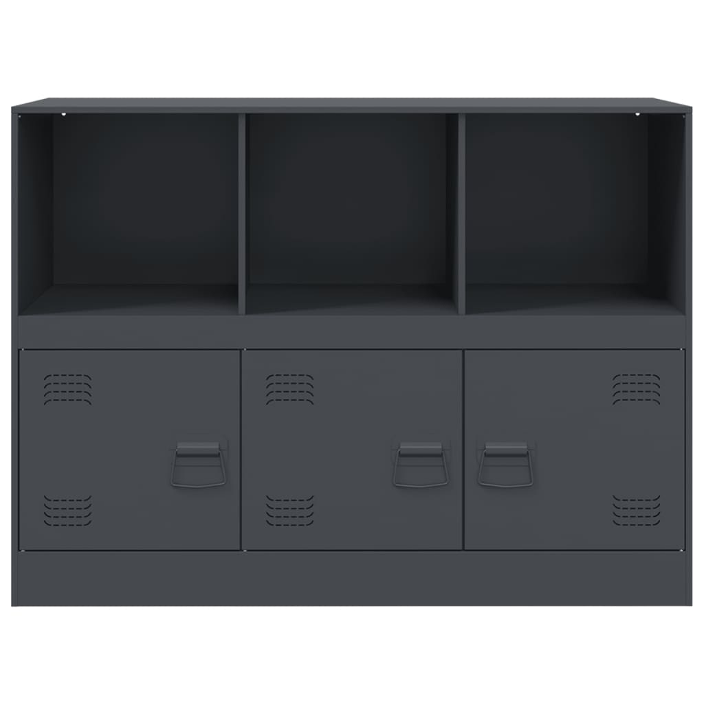 Dieses robuste Sideboard wird mit seinem trendigen und dennoch praktischen Design sicherlich der Mittelpunkt Ihres Wohnzimmers werden. Stabiles Material: Der Rahmen des Sideboards besteht aus kaltgewalztem Stahl. Kaltgewalzter Stahl ist eine Art kohlenstoffarmer Stahl, der im „Kaltwalzverfahren“ hergestellt und bei nahezu normalen Raumtemperaturen verarbeitet wird. Kaltgewalzter Stahl besitzt eine glattere Oberfläche, eine höhere Festigkeit und lässt sich präziser verarbeiten. Reichlich Stauraum: Dieser Schrank bietet praktischen Stauraum für Zeitschriften, Bücher, Bürobedarf, Dokumente und andere Gegenstände, die hier gut geordnet und in Reichweite aufbewahrt werden können.Pflegeleicht: Der Tisch lässt sich mit einem feuchten Tuch leicht reinigen und erfordert wenig Pflege.Praktischer Griff: Das Sideboard ist mit 3 Griffen ausgestattet, die das Öffnen und Schließen des Schranks erleichtern und gleichzeitig zu seiner ansprechenden Optik beitragen. Achtung:Um ein Umkippen zu verhindern, muss dieses Produkt mit einer Wandhalterung (nicht im Lieferumfang enthalten) gesichert werden.