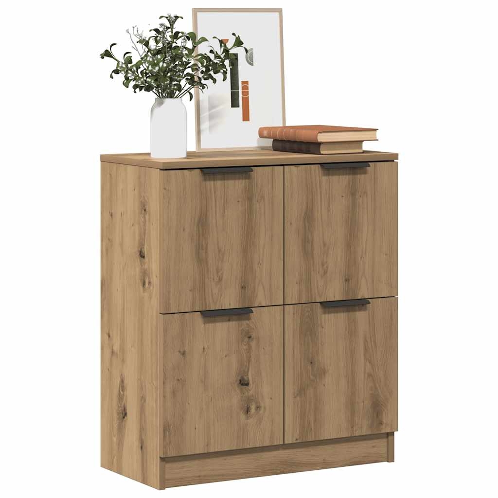 Bringen Sie einen Hauch von modernem Charme in Ihre Einrichtung mit diesem Sideboard! Starkes und langlebiges Material: Holzwerkstoff ist ein langlebiges und robustes Material mit einer glatten Oberfläche, das gegen Feuchtigkeit, Verformung und Rissbildung beständig ist, wodurch es eine zuverlässigen Wahl für die Herstellung von Möbeln ist.Reichlich Stauraum: Die Kommode bietet reichlich Stauraum, um die verschiedenen Dinge des täglichen Bedarfs gut organisiert und in Reichweite aufzubewahren.Stabile und robuste Oberplatte: Die Oberplatte bietet den perfekten Platz, um Dekoartikel, Bilderrahmen und Topfpflanzen zur Schau zu stellen.Pflegeleicht: Dank seiner glatten Oberfläche lässt sich das Sideboard mit einem feuchten Tuch leicht reinigen und erfordert wenig Pflege. Achtung:Um ein Umkippen zu vermeiden, sollte dieses Produkt mit der mitgelieferten Wandhalterung gesichert werden.