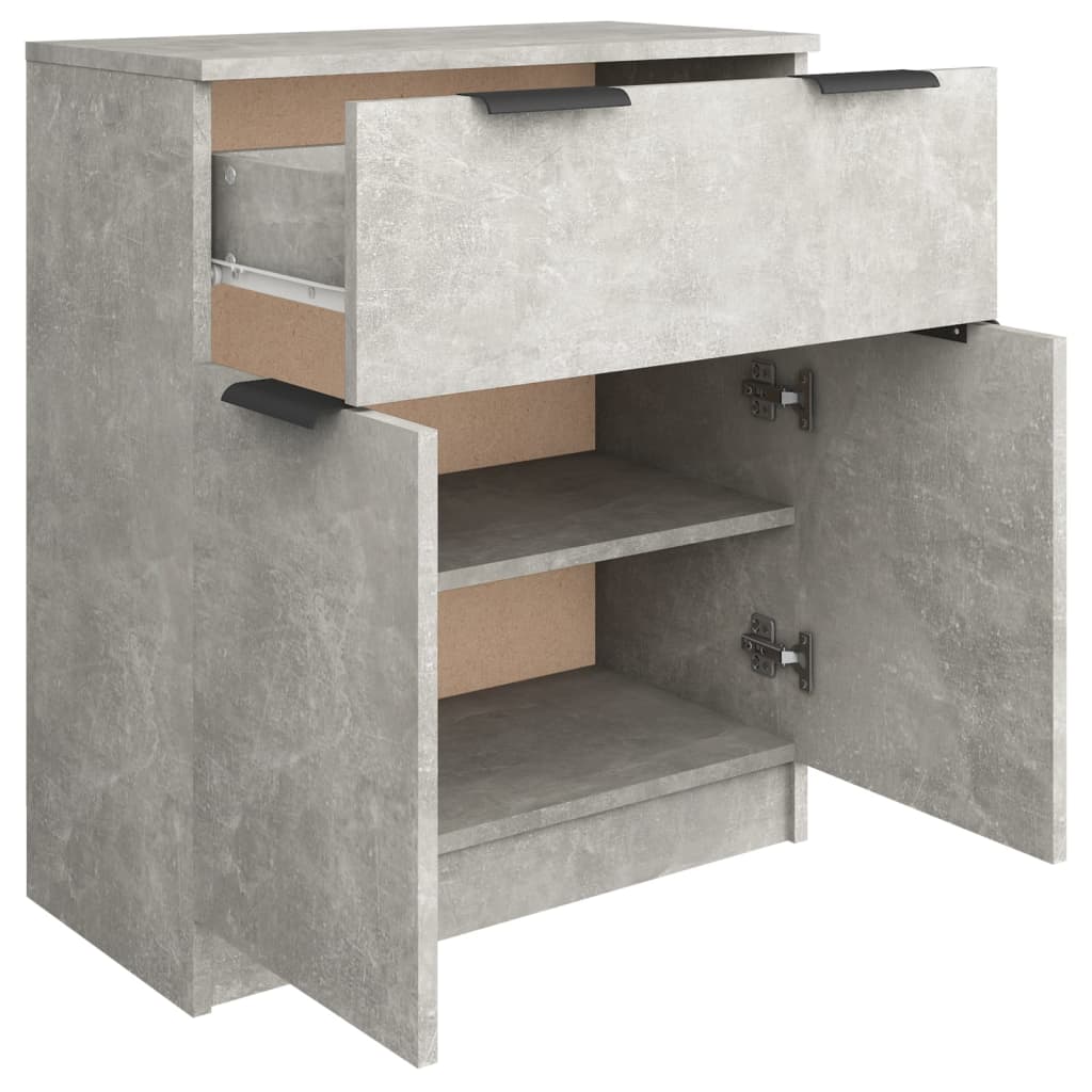 Bringen Sie einen Hauch von modernem Charme in Ihre Einrichtung mit diesem Sideboard! Pflegeleichtes Material: Holzwerkstoff ist mit seiner glatten Oberfläche ein Material hoher Qualität, das sich durch Festigkeit, Stabilität und Feuchtigkeitsbeständigkeit auszeichnet. Aus Holzwerkstoff gefertigt, lässt sich der Beistellschrank mit einem feuchten Tuch leicht reinigen.Reichlich Stauraum: Mit einer Schublade und 2 Türen versehen, bietet der Schrank reichlich Stauraum zur ordentlichen Aufbewahrung verschiedener Sachen.Robuste Oberplatte: Der Lagerschrank verfügt über eine robuste Oberplatte, auf der sich Dekoartikel wie Bilderrahmen oder Topfpflanzen zur Schau stellen lassen. ACHTUNG:Um ein Umkippen zu vermeiden, sollte dieses Produkt mit der mitgelieferten Wandhalterung gesichert werden.
