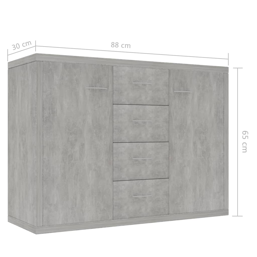 Dieses Sideboard im minimalistischen Design wird eine praktische und zugleich dekorative Ergänzung zu Ihrem Zuhause sein. Mit 4 Schubladen und 2 Türen bietet das Sideboard ausreichend Stauraum für Bücher, Multimedia-Geräte und andere Gegenstände. Die starke Tischplatte bietet den idealen Platz zum Aufstellen von Dekorationsartikeln, Fotorahmen oder Topfpflanzen. Es kann auch als Lowboard, Beistellschrank usw. verwendet werden. Dank des hochwertigen Holzwerkstoffs ist dieses Sideboard auf eine lange Lebensdauer ausgelegt. Der Schubladenschrank ist leicht mit einem feuchten Tuch zu reinigen.
