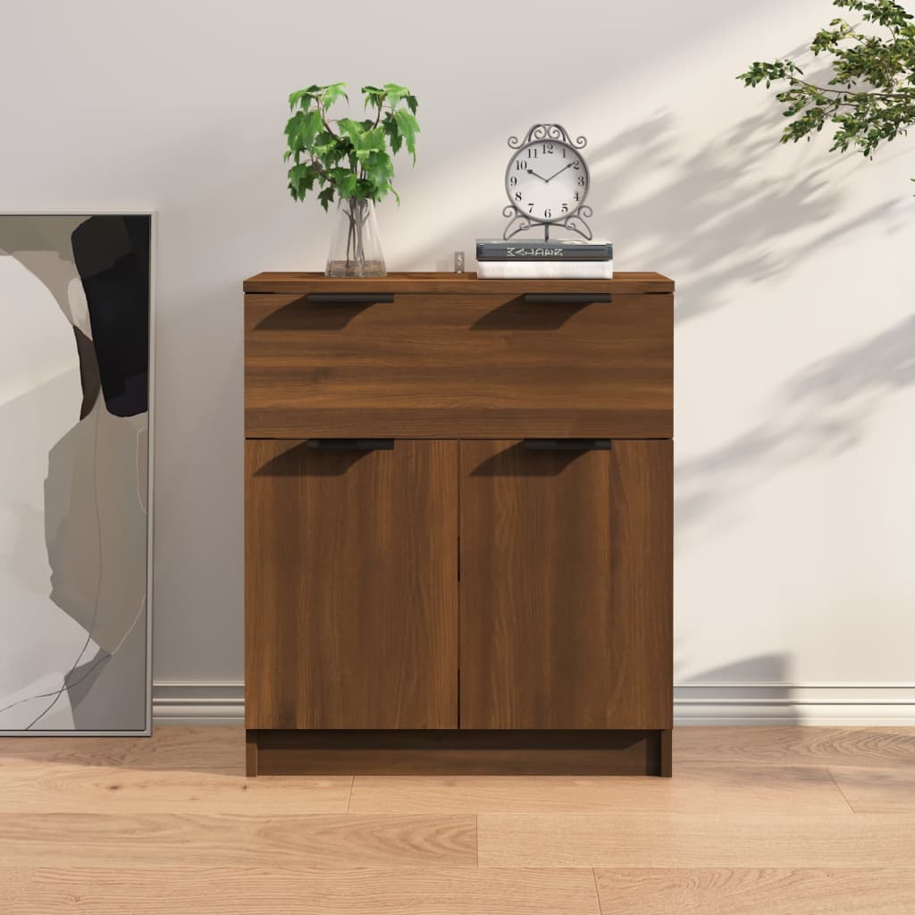 Bringen Sie einen Hauch von modernem Charme in Ihre Einrichtung mit diesem Sideboard! Pflegeleichtes Material: Holzwerkstoff ist mit seiner glatten Oberfläche ein Material hoher Qualität, das sich durch Festigkeit, Stabilität und Feuchtigkeitsbeständigkeit auszeichnet. Aus Holzwerkstoff gefertigt, lässt sich der Beistellschrank mit einem feuchten Tuch leicht reinigen.Reichlich Stauraum: Mit einer Schublade und 2 Türen versehen, bietet der Schrank reichlich Stauraum zur ordentlichen Aufbewahrung verschiedener Sachen.Robuste Oberplatte: Der Lagerschrank verfügt über eine robuste Oberplatte, auf der sich Dekoartikel wie Bilderrahmen oder Topfpflanzen zur Schau stellen lassen. ACHTUNG:Um ein Umkippen zu vermeiden, sollte dieses Produkt mit der mitgelieferten Wandhalterung gesichert werden.