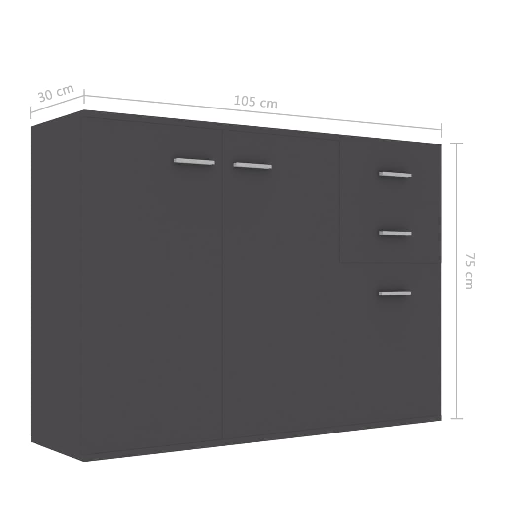 Dieses Sideboard im minimalistischen Design wird eine praktische und zugleich dekorative Ergänzung zu Ihrem Zuhause sein. Mit 3 Türen und 2 Schubladen bietet das Sideboard ausreichend Stauraum für Bücher, Multimedia-Geräte und andere Gegenstände. Die starke Tischplatte bietet den idealen Platz zum Aufstellen von Dekorationsartikeln, Fotorahmen oder Topfpflanzen. Dank des hochwertigen Holzwerkstoffs ist dieses Sideboard auf Langlebigkeit ausgelegt. Zusätzlich ist der Schubladenschrank leicht mit einem feuchten Tuch zu reinigen. Dieser Artikel ist einfach zu montieren.