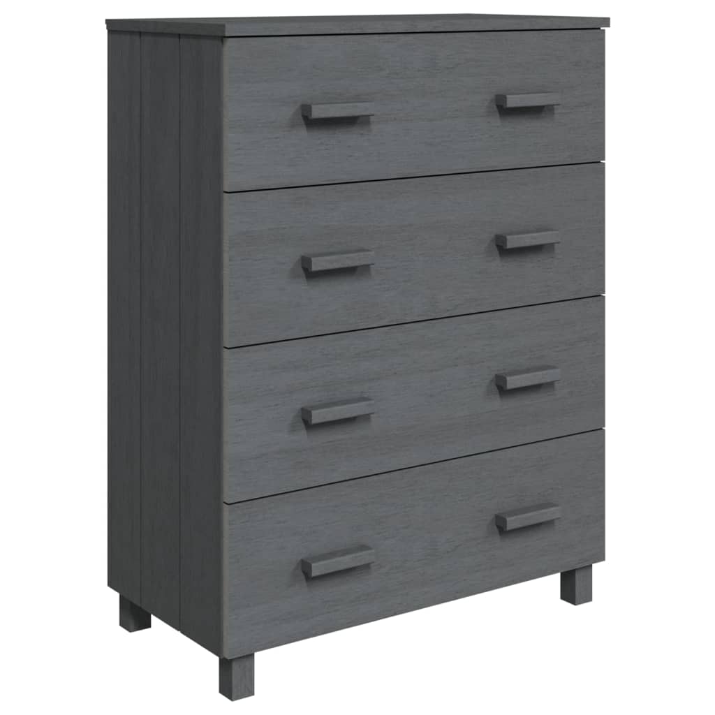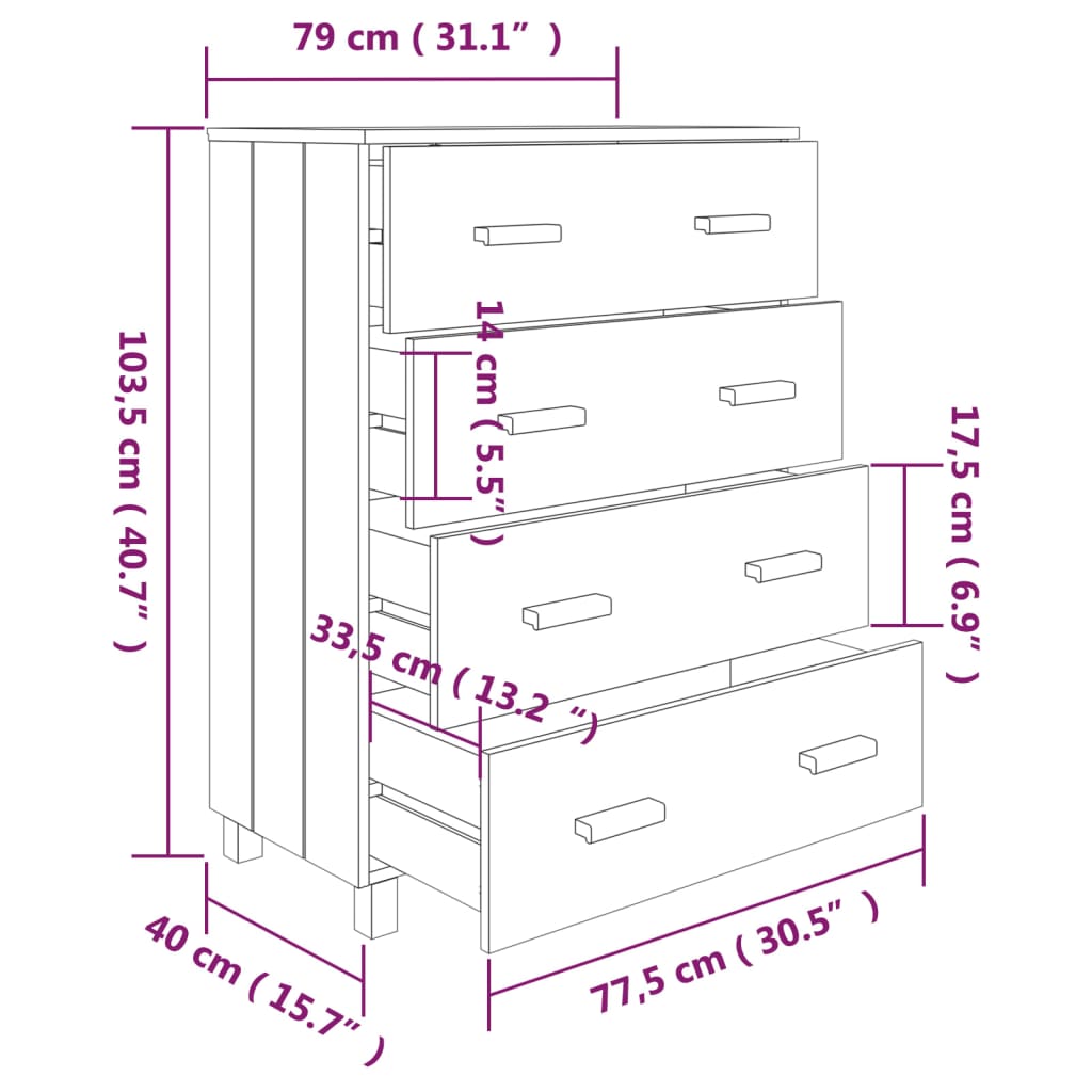 Diese Kommode aus Holz stellt sowohl eine dekorative als auch eine praktische Ergänzung zu Ihrem Interieur dar. Aus massivem Kiefernholz gefertigt, ist diese Kommode stabil und robust. Das Sideboard verfügt über 4 leichtgängige Schubladen, die reichlich Stauraum bieten, um die verschiedenen Dinge des täglichen Bedarfs gut organisiert und in Reichweite aufzubewahren. Darüber hinaus eignet sich die Oberplatte perfekt, um Dekoartikel, Bilderrahmen und Topfpflanzen schön zu präsentieren.