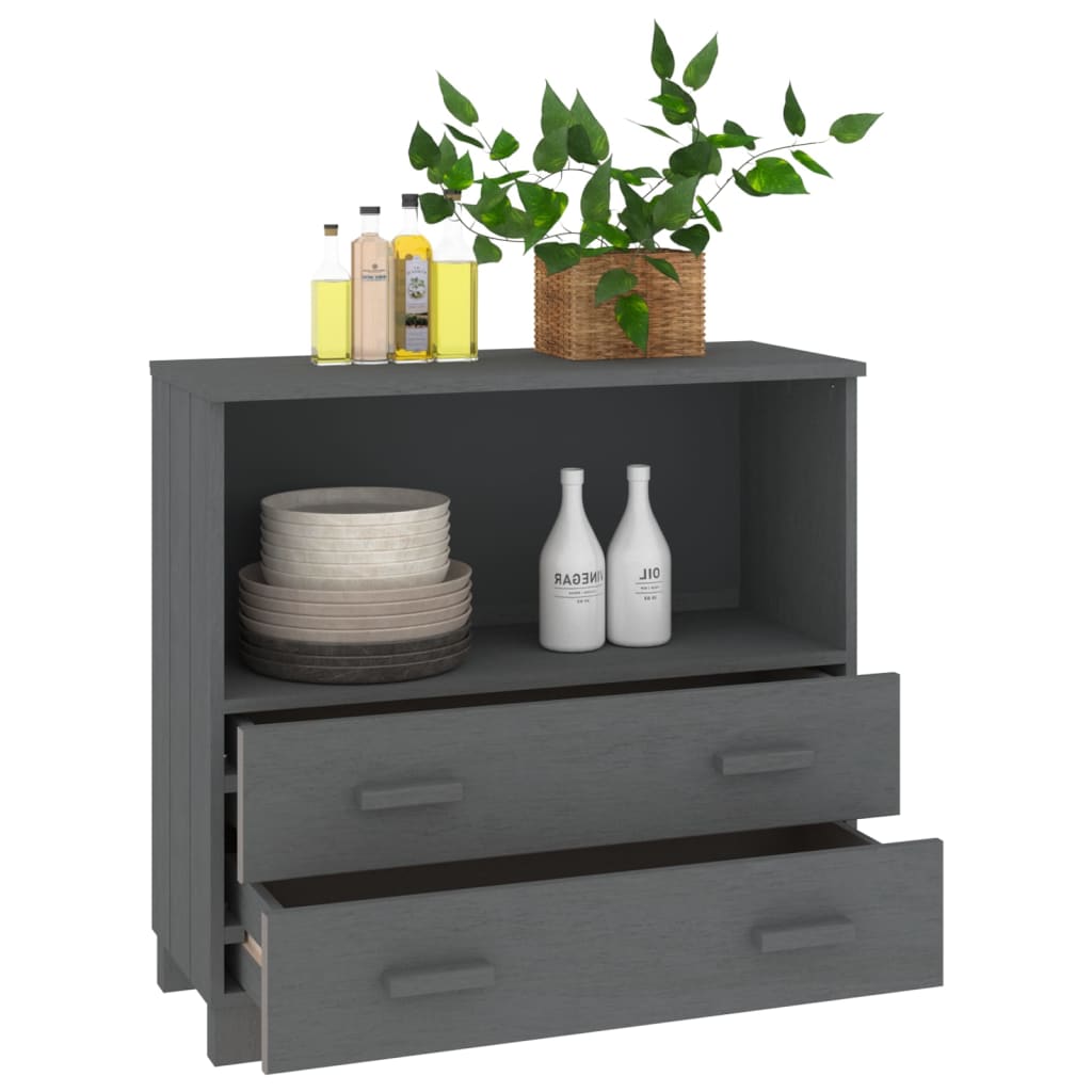 Dieses Sideboard aus Holz stellt sowohl eine dekorative als auch eine praktische Ergänzung zu Ihrem Interieur dar. Aus massivem Kiefernholz gefertigt, ist die Kommode stabil und robust. Mit 1 Fach und 2 Schubladen ausgestattet, bietet sie reichlich Stauraum, um verschiedene wichtige Alltagssachen ordentlich und griffbereit aufzubewahren. Darüber hinaus eignet sich die robuste Oberplatte perfekt, um Dekoartikel, Bilderrahmen und Topfpflanzen zur Schau zu stellen.