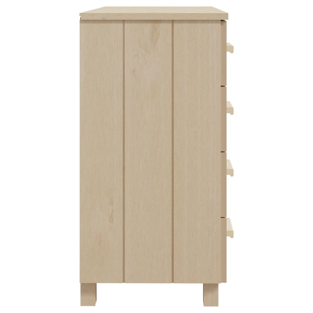 Diese Kommode aus Holz stellt sowohl eine dekorative als auch eine praktische Ergänzung zu Ihrem Interieur dar. Aus massivem Kiefernholz gefertigt, ist diese Kommode stabil und robust. Das Sideboard verfügt über 5 leichtgängige Schubladen, die reichlich Stauraum bieten, um die verschiedenen Dinge des täglichen Bedarfs gut organisiert und in Reichweite aufzubewahren. Darüber hinaus eignet sich die Oberplatte perfekt, um Dekoartikel, Bilderrahmen und Topfpflanzen schön zu präsentieren.