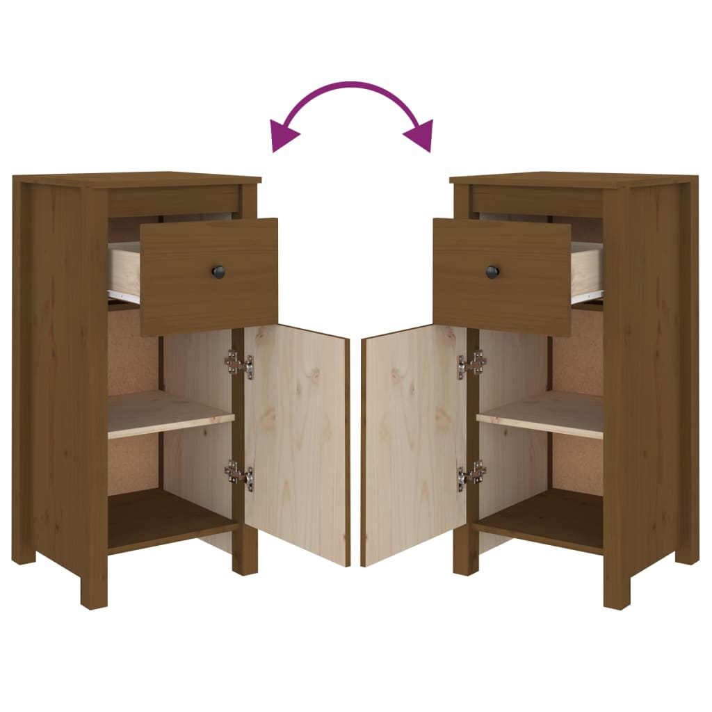 Sorge für Ordnung in deinem Wohnzimmer mit diesem Sideboard aus Holz! Das praktische Sideboard wird deinen verschiedenen Anforderungen gerecht und ist eine ideale Ergänzung zu deinem Zimmer. Massives Kiefernholz: Massives Kiefernholz ist ein wunderschönes Naturmaterial. Kiefernholz weist eine gerade Maserung auf und die Aststellen verleihen dem Material seine charakteristische, rustikale Optik.Reichlich Stauraum: Der Schrank bietet viel Platz, um verschiedene Alltagssachen gut organisiert und in Reichweite aufzubewahren.Stabile Oberplatte: Die robuste Oberplatte des Schranks eignet sich ideal, um Dekoartikel, Bilderrahmen oder Topfpflanzen zur Schau zu stellen.Zwei Montagemöglichkeiten: Die Tür des Schranks kann je nach Bedarf auf der linken oder rechten Seite montiert werden. Achtung:Um das Umkippen zu verhindern, muss dieses Produkt mit der mitgelieferten Wandhalterung gesichert werden.Hinweis:Jedes Produkt wird mit einer Montageanleitung in der Verpackung für eine einfache Montage geliefert.
