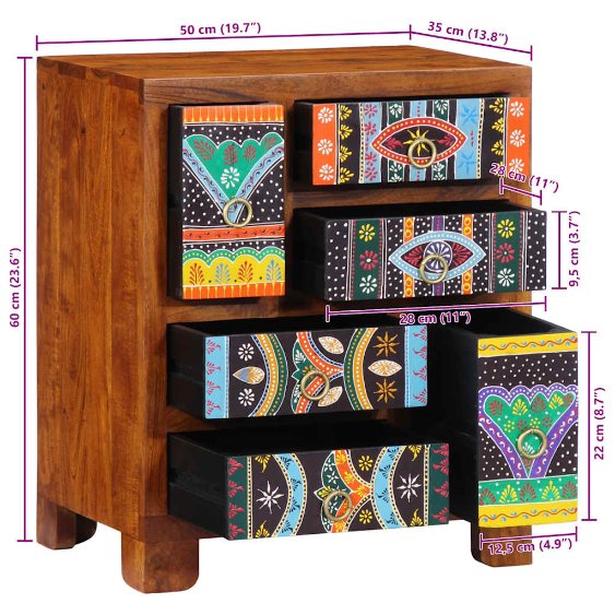 Dieses Sideboard bietet sowohl dekorativen Reiz als auch praktischen Stauraum und ist damit eine perfekte Ergänzung für dein Zuhause. Robust und stabil: Akazienholz ist für seine Festigkeit und Haltbarkeit bekannt. Seine vielfältige Farbe und seine einzigartige Maserung sorgen für eine attraktive Optik. Dank seiner ausgezeichneten Stabilität und Witterungsbeständigkeit eignet es sich ideal für die Herstellung von Innen- und Außenmöbeln.Reichlich Stauraum: Der Schrank bietet reichlich Stauraum, um Essgeschirr und andere Haushaltssachen ordentlich und griffbereit aufzubewahren.Lebendige Schönheit: Das handgemalte Design des Sidebaords mit einer Mischung aus leuchtenden Farben macht es zu einem auffälligen Akzent in jedem Raum und wertet deine Einrichtung mit einem einzigartigen künstlerischen Flair auf.Breiter Anwendungsbereich: Du kannst diesen Schrank als Badschrank oder Küchenschrank verwenden, oder einfach als eleganten Aufbewahrungsschrank im Schlafzimmer, Badezimmer, Eingangsbereich, Flur und Büro, Esszimmer und anderen Wohnbereichen. Gut zu wissen:Jedes Stück ist ein Unikat, das in Farbe und Maserung variiert. Die Lieferung erfolgt in zufälliger Reihenfolge, wodurch die Exklusivität und Individualität deines Produkts gewährleistet wird. Achtung:Um ein Umkippen zu vermeiden, sollte dieses Produkt mit der mitgelieferten Wandhalterung gesichert werden.