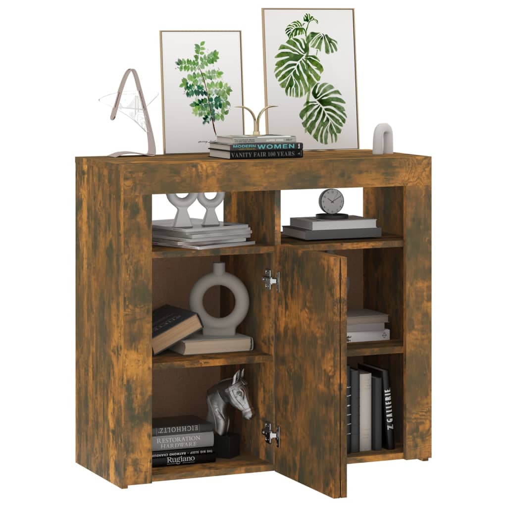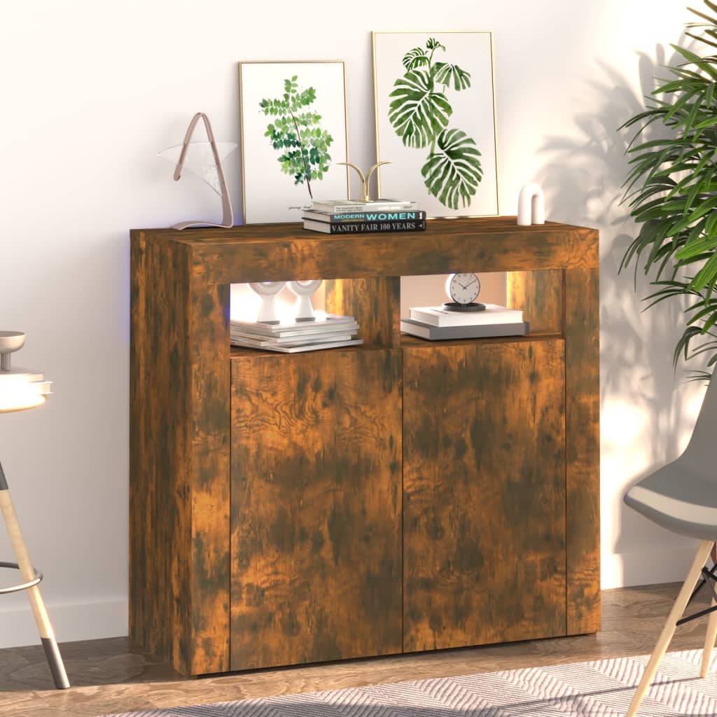 Dieses Sideboard mit LED-Leuchten im minimalistischen Design ist eine praktische und zugleich dekorative Ergänzung für Ihr Zuhause! Starkes Material: Holzwerkstoff ist ein Material von außergewöhnlicher Qualität mit glatter Oberfläche, das sich durch Festigkeit, Stabilität und Feuchtigkeitsbeständigkeit auszeichnet. Aus Holzwerkstoff gefertigt, lässt sich dieses LED-Sideboard einfach reinigen.Viel Stauraum: Er bietet reichlich Stauraum, um verschiedene Sachen ordentlich aufzubewahren.RGB-LEDs: Dieser Schrank ist mit RGB-LED-Leuchten ausgestattet, die über verschiedene Menüs verfügen, um die Farbe der Leuchten zu wechseln und die Farbe automatisch unterschiedlich einzustellen. Die LED-Beleuchtung unterstreicht den modernen Look und trägt zum trendigen Gefühl bei.Stilvolles Design: Die klaren Linien und das schlichte Design sorgen dafür, dass sich das Highboard harmonisch in deine Einrichtung einfügt. Achtung:Um das Umkippen zu verhindern, muss dieses Produkt mit der mitgelieferten Wandhalterung gesichert werden.Hinweis: Jedes Produkt wird mit einer Montageanleitung in der Verpackung für eine einfache Montage geliefert.Das Produkt verfügt über einen USB-Anschluss, aber die zertifizierte 5-V-USB-Stromquelle ist nicht im Lieferumfang enthalten.