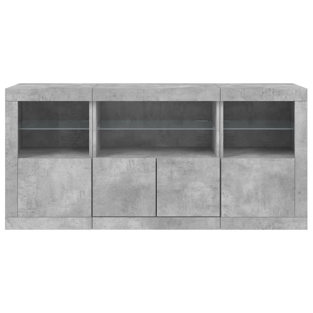 Dekoriere deinen Raum mit diesem modernen Sideboard mit LED-Leuchten, das sich leicht mit Möbeln in jedem Stil in deinem Zuhause kombinieren lässt. Langlebiges Material: Holzwerkstoff ist ein Material von außergewöhnlicher Qualität mit glatter Oberfläche, das sich durch Festigkeit, Stabilität und Feuchtigkeitsbeständigkeit auszeichnet.RGB-LED-Leuchten: Die Anrichte ist mit lebendigen RGB-LED-Leuchten ausgestattet. Mit verschiedenen anpassbaren Menüs kannst du die Farbe der Lichter mühelos wechseln und sie sogar auf automatische Anpassung einstellen. Die LED-Beleuchtung unterstreicht den modernen Look des Sideboards und trägt zu seinem trendigen Design bei.Viel Stauraum: Der Beistellschrank bietet viel Stauraum, um verschiedene Alltagssachen ordentlich und griffbereit aufzubewahren.Präsentation: Die stabile Oberplatte des Flurschranks eignet sich ideal, um Dekoartikel, Bilderrahmen oder Topfpflanzen zur Schau zu stellen.Praktische Türen: Schütze deine wichtigsten Sachen vor Staub, indem du sie hinter den Türen in diesem Beistellschrank verstaust. Gut zu wissen:Das Produkt verfügt über einen USB-Anschluss, für den eine zertifizierte 5V-USB-Stromquelle erforderlich ist (nicht im Lieferumfang enthalten). Achtung:Um ein Umkippen zu vermeiden, sollte dieses Produkt mit der mitgelieferten Wandhalterung gesichert werden.