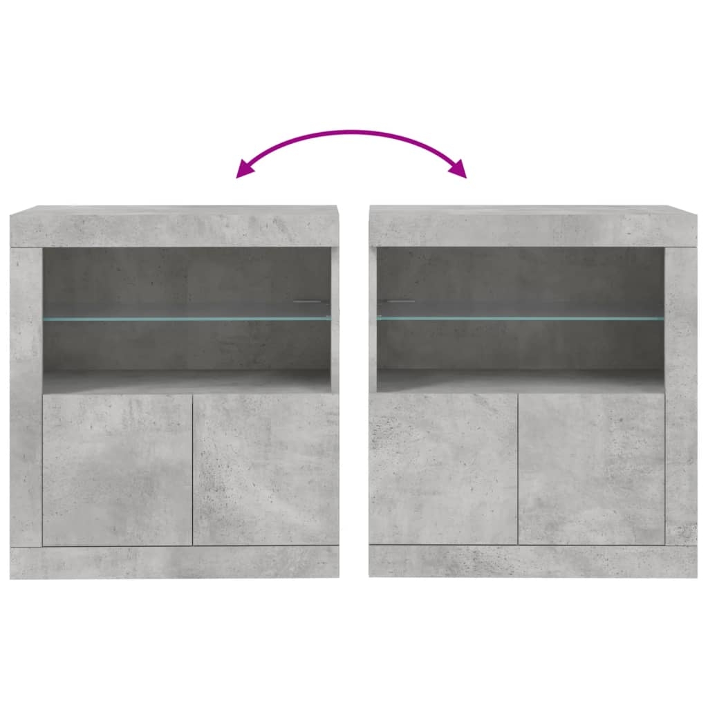 Dekoriere dein Zuhause mit diesem modernen Sideboard mit LED-Beleuchtung, das sich leicht mit Möbeln in jedem Stil kombinieren lässt. Langlebiges Material: Holzwerkstoff ist ein Material von außergewöhnlicher Qualität mit glatter Oberfläche, das sich durch Festigkeit, Stabilität und Feuchtigkeitsbeständigkeit auszeichnet.Reichlich Stauraum: Dieses Sideboard bietet viel Stauraum, damit du deine Zeitschriften, Bücher, Dekoartikel, Sammlerstücke und andere kleine Gegenstände gut geordnet und in Reichweite aufbewahren kannst.Präsentationsfunktion: Die robuste Oberplatte des Sideboards eignet sich ideal zum Ausstellen von Dekorationsgegenständen, Bilderrahmen, Topfpflanzen usw.RGB-LED-Beleuchtung: Der Schrank ist mit RGB LED-Leuchten ausgestattet. Dank verschiedenen Einstellungsmöglichkeiten kannst du die Lichtfarbe der Beleuchtung mühelos wechseln und diese sogar auf automatisch einstellen. Achtung:Um ein Umkippen zu vermeiden, sollte dieses Produkt mit der mitgelieferten Wandhalterung gesichert werden. Gut zu wissen:Das Produkt verfügt über einen USB-Anschluss, für den eine zertifizierte 5V-USB-Stromquelle erforderlich ist (nicht im Lieferumfang enthalten).