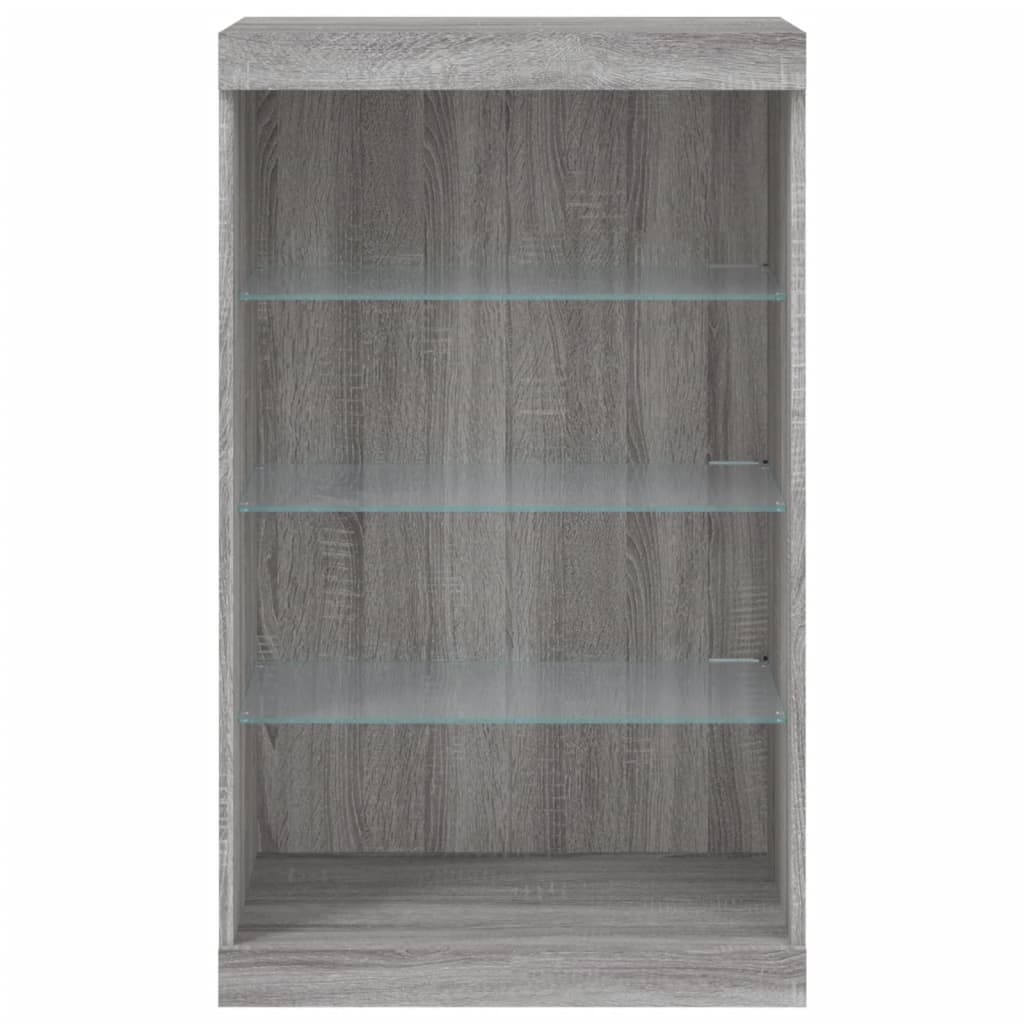 Dekoriere dein Zuhause mit diesem modernen Sideboard mit LED-Beleuchtung, das sich leicht mit Möbeln in jedem Stil kombinieren lässt. Langlebiges Material: Holzwerkstoff ist ein Material von außergewöhnlicher Qualität mit glatter Oberfläche, das sich durch Festigkeit, Stabilität und Feuchtigkeitsbeständigkeit auszeichnet.Reichlich Stauraum: Dieses Sideboard bietet viel Stauraum, damit du deine Zeitschriften, Bücher, Dekoartikel, Sammlerstücke und andere kleine Gegenstände gut geordnet und in Reichweite aufbewahren kannst.Präsentationsfunktion: Die robuste Oberplatte des Sideboards eignet sich ideal zum Ausstellen von Dekorationsgegenständen, Bilderrahmen, Topfpflanzen usw.Einstellbare LED-Beleuchtung: Dieser kleine Schrank ist mit RGB-LED-Leuchten ausgestattet. Über verschiedene Menüs kannst du die Lichtfarbe ändern und die Beleuchtung auf automatisch einstellen, um dein Zuhause farbenfroh und schön zu dekorieren. Achtung:Um ein Umkippen zu vermeiden, sollte dieses Produkt mit der mitgelieferten Wandhalterung gesichert werden. Gut zu wissen:Das Produkt verfügt über einen USB-Anschluss, für den eine zertifizierte 5V-USB-Stromquelle erforderlich ist (nicht im Lieferumfang enthalten).