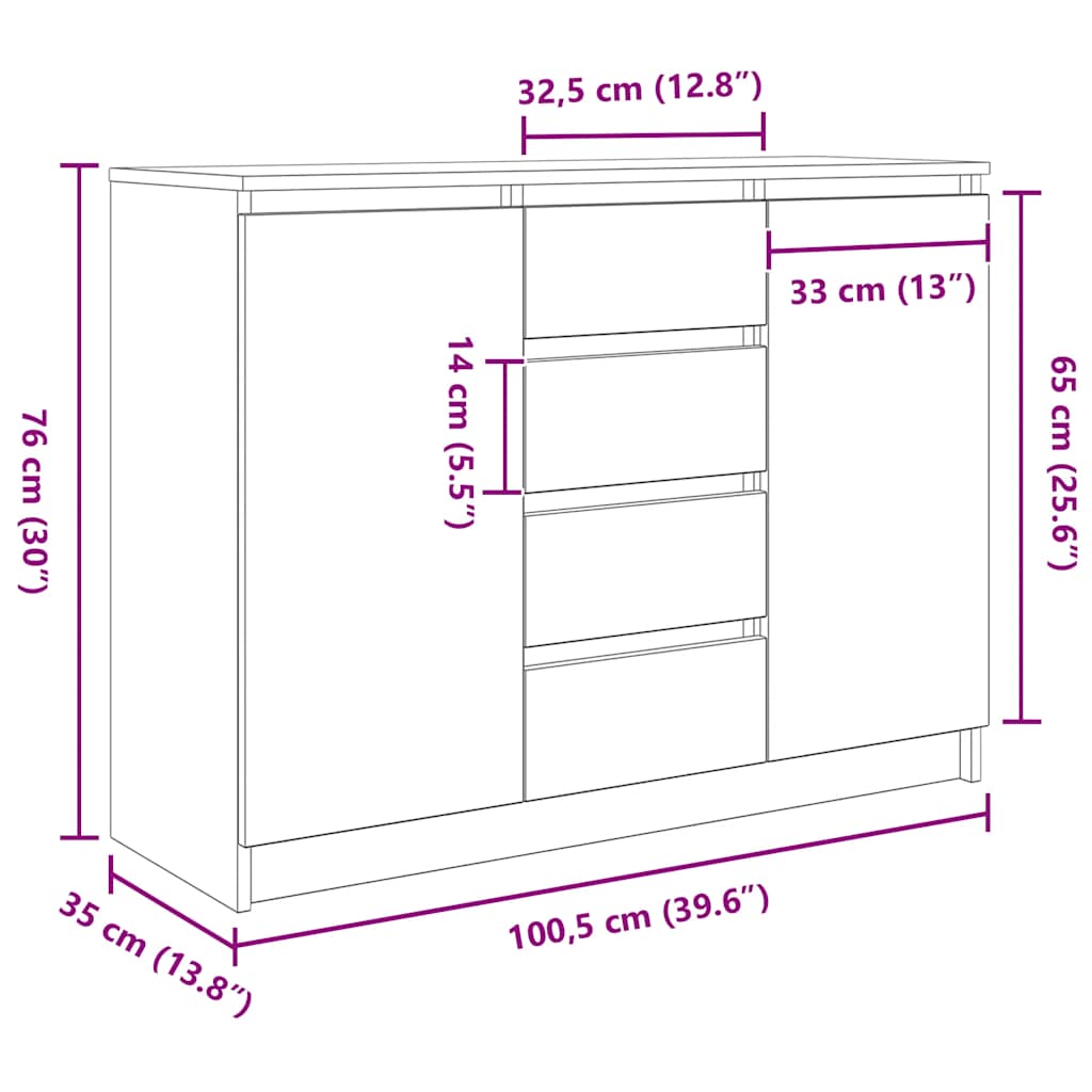 - Gesamtabmessungen: 100,5 x 35 x 76 cm (B x T x H)