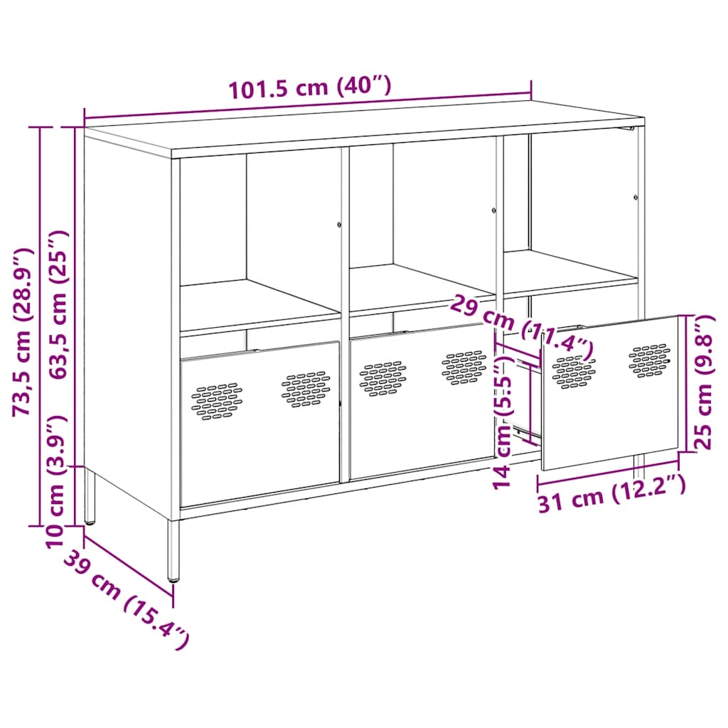 Dieses klassische Sideboard ist sowohl eine dekorative als auch eine praktische Ergänzung zu deinem Zuhause oder Büro. Robuste und stabile Struktur: Kaltgewalzter Stahl hat eine glattere Oberfläche, bietet höhere Festigkeit und gewährleistet eine bessere Präzisionsbearbeitung. Die Metallfüße verleihen der Kommode eine angenehme Optik und sorgen gleichzeitig für Stabilität.Viel Stauraum: Mit Schubladen und offenen Fächern versehen, bietet der Schrank viel Platz, um verschiedene Alltagssachen gut organisiert und in Reichweite aufzubewahren.Pflegeleicht: Dank seiner glatten Oberfläche lässt sich das Sideboard mit einem feuchten Tuch leicht reinigen und erfordert wenig Pflege.Vielseitig einsetzbar: Dieser Seitenschrank ist überall verwendbar, sei es im Schlafzimmer, Wohnzimmer, Flur usw. – für jedes Bedürfnis! Achtung:Um ein Umkippen zu vermeiden, sollte dieses Produkt mit der mitgelieferten Wandhalterung gesichert werden.