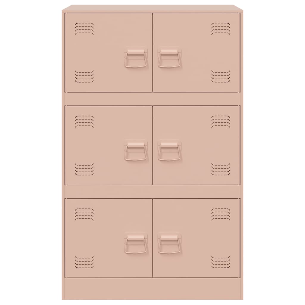 Dieses robuste Sideboard wird mit seinem trendigen und dennoch praktischen Design sicherlich der Mittelpunkt Ihres Wohnzimmers werden. Stabiles Material: Der Rahmen des Sideboards besteht aus kaltgewalztem Stahl. Kaltgewalzter Stahl ist eine Art kohlenstoffarmer Stahl, der im „Kaltwalzverfahren“ hergestellt und bei nahezu normalen Raumtemperaturen verarbeitet wird. Kaltgewalzter Stahl besitzt eine glattere Oberfläche, eine höhere Festigkeit und lässt sich präziser verarbeiten.Reichlich Stauraum: Dieser Schrank bietet praktischen Stauraum für Zeitschriften, Bücher, Bürobedarf, Dokumente und andere Gegenstände, die hier gut geordnet und in Reichweite aufbewahrt werden können.Pflegeleicht: Der Tisch lässt sich mit einem feuchten Tuch leicht reinigen und erfordert wenig Pflege.Praktischer Griff: Das Sideboard ist mit 6 Griffen ausgestattet, die das Öffnen und Schließen des Schranks erleichtern und gleichzeitig zu seiner ansprechenden Optik beitragen. Achtung:Um ein Umkippen zu verhindern, muss dieses Produkt mit einer Wandhalterung (nicht im Lieferumfang enthalten) gesichert werden.