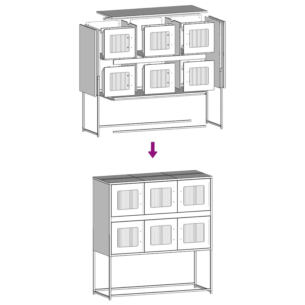 Dieses Sideboard bietet sowohl dekorativen Reiz als auch praktischen Stauraum und ist damit eine perfekte Ergänzung für dein Zuhause. Stabiles und langlebiges Gestell: Stahl ist stark, stabil und langlebig, was ihn zur idealen Wahl für eine Vielzahl von Anwendungen macht, von der Möbelherstellung bis hin zum Bauwesen.Praktische Griffe: Die Kommode ist mit schönen ergonomischen, Griffen versehen, die das Öffnen und Schließen erleichtern und gleichzeitig zu ihrer ansprechenden Optik beitragen.Reichlich Stauraum: Der Schrank bietet reichlich Stauraum, um Essgeschirr und andere Haushaltssachen ordentlich und griffbereit aufzubewahren.Metallfüße: Die Metallfüße verleihen ihm eine angenehme Optik und sorgen gleichzeitig für Stabilität.Breiter Anwendungsbereich: Du kannst diesen Schrank als Badschrank oder Küchenschrank verwenden, oder einfach als eleganten Aufbewahrungsschrank im Schlafzimmer, Badezimmer, Eingangsbereich, Flur und Büro, Esszimmer und anderen Wohnbereichen. Achtung:Um ein Umkippen zu vermeiden, sollte dieses Produkt mit der mitgelieferten Wandhalterung gesichert werden.