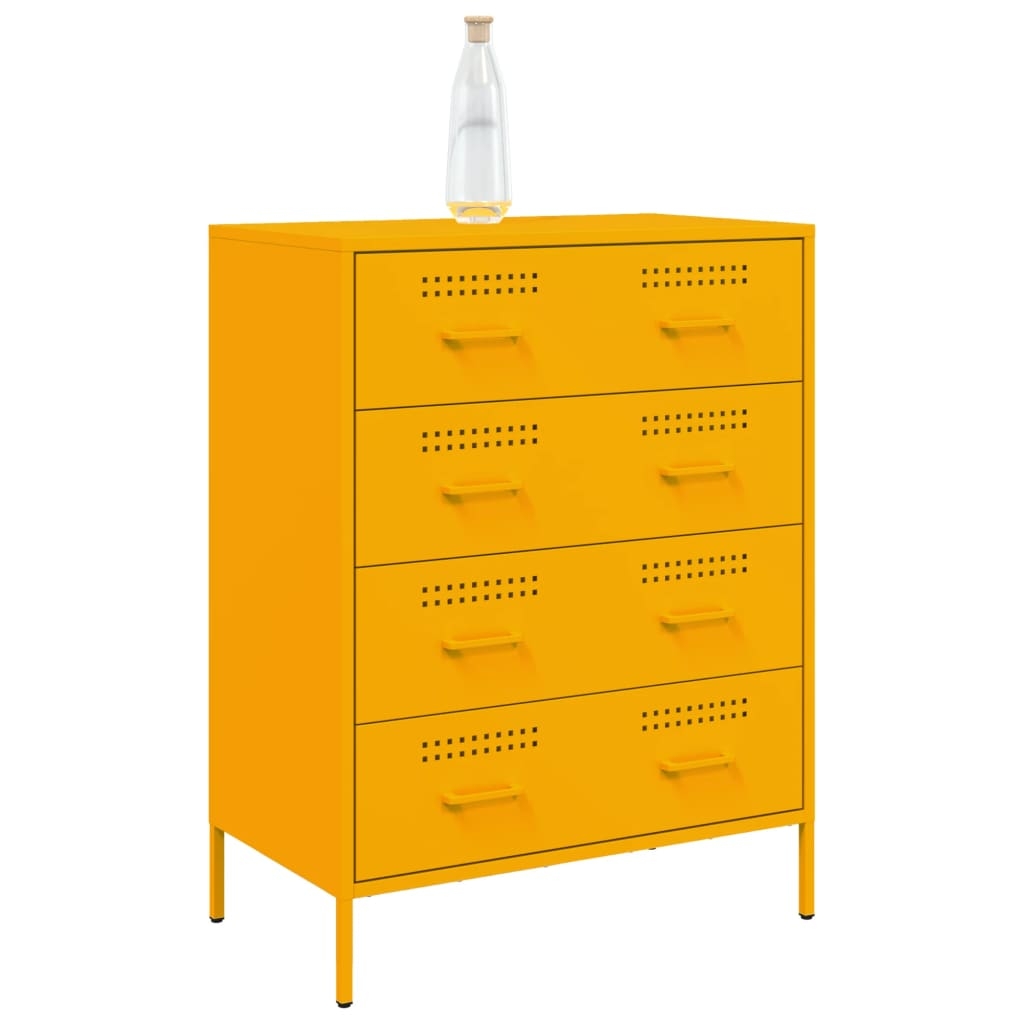 Dieses robuste Sideboard im Industrie-Stil ist eine zeitlose Ergänzung zu deinem Schlafzimmer oder Wohnzimmer. Robustes und stabiles Gestell: Stahl ist stark, stabil und langlebig, was ihn zur idealen Wahl für eine Vielzahl von Anwendungen macht, von der Möbelherstellung bis hin zum Bauwesen.Reichlich Stauraum: Mit seinen 4 Schubladen bietet das Sideboard reichlich Stauraum, um verschiedene Alltagssachen ordentlich und in Reichweite aufzubewahren. Einfache Reinigung: Der Schrank lässt sich leicht mit einem feuchten Tuch reinigen und erfordert wenig Pflege.Achtung:Um ein Umkippen zu vermeiden, sollte dieses Produkt mit der mitgelieferten Wandhalterung gesichert werden.