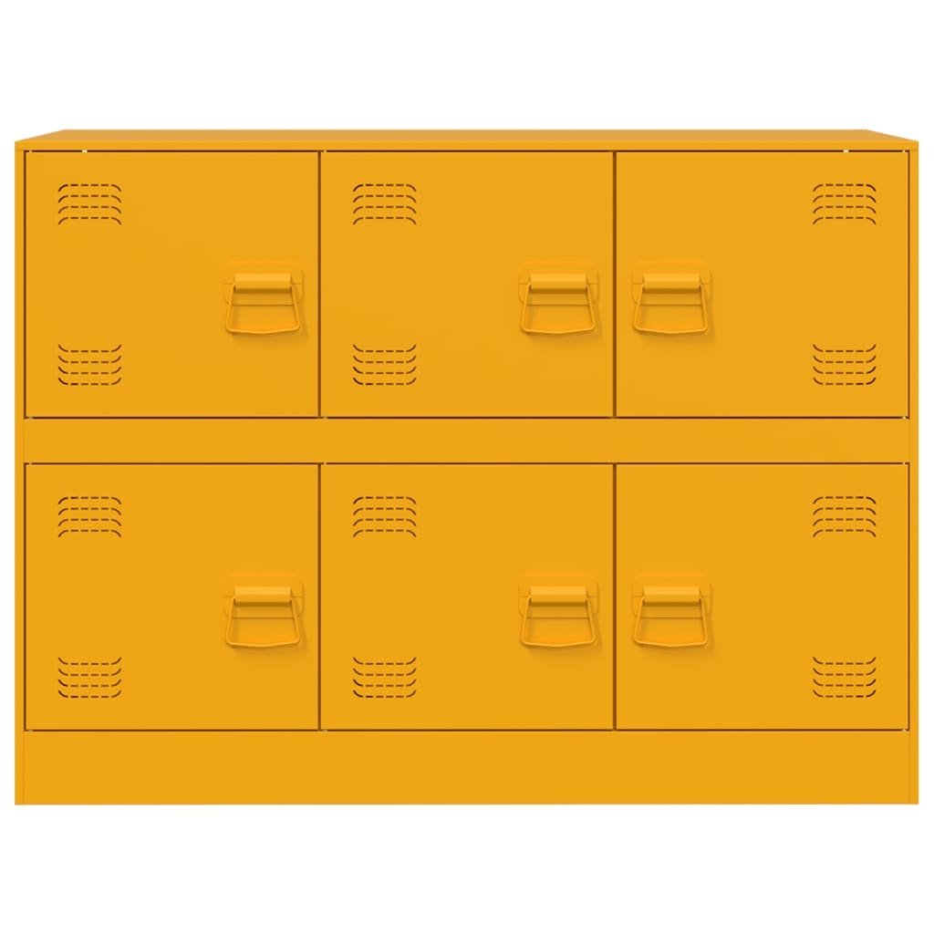 Dieses robuste Sideboard wird mit seinem trendigen und dennoch praktischen Design sicherlich der Mittelpunkt Ihres Wohnzimmers werden. Stabiles Material: Der Rahmen des Sideboards besteht aus kaltgewalztem Stahl. Kaltgewalzter Stahl ist eine Art kohlenstoffarmer Stahl, der im „Kaltwalzverfahren“ hergestellt und bei nahezu normalen Raumtemperaturen verarbeitet wird. Kaltgewalzter Stahl besitzt eine glattere Oberfläche, eine höhere Festigkeit und lässt sich präziser verarbeiten. Reichlich Stauraum: Dieser Schrank bietet praktischen Stauraum für Zeitschriften, Bücher, Bürobedarf, Dokumente und andere Gegenstände, die hier gut geordnet und in Reichweite aufbewahrt werden können.Pflegeleicht: Der Tisch lässt sich mit einem feuchten Tuch leicht reinigen und erfordert wenig Pflege.Praktischer Griff: Das Sideboard ist mit 6 Griffen ausgestattet, die das Öffnen und Schließen des Schranks erleichtern und gleichzeitig zu seiner ansprechenden Optik beitragen. Achtung:Um ein Umkippen zu verhindern, muss dieses Produkt mit einer Wandhalterung (nicht im Lieferumfang enthalten) gesichert werden.