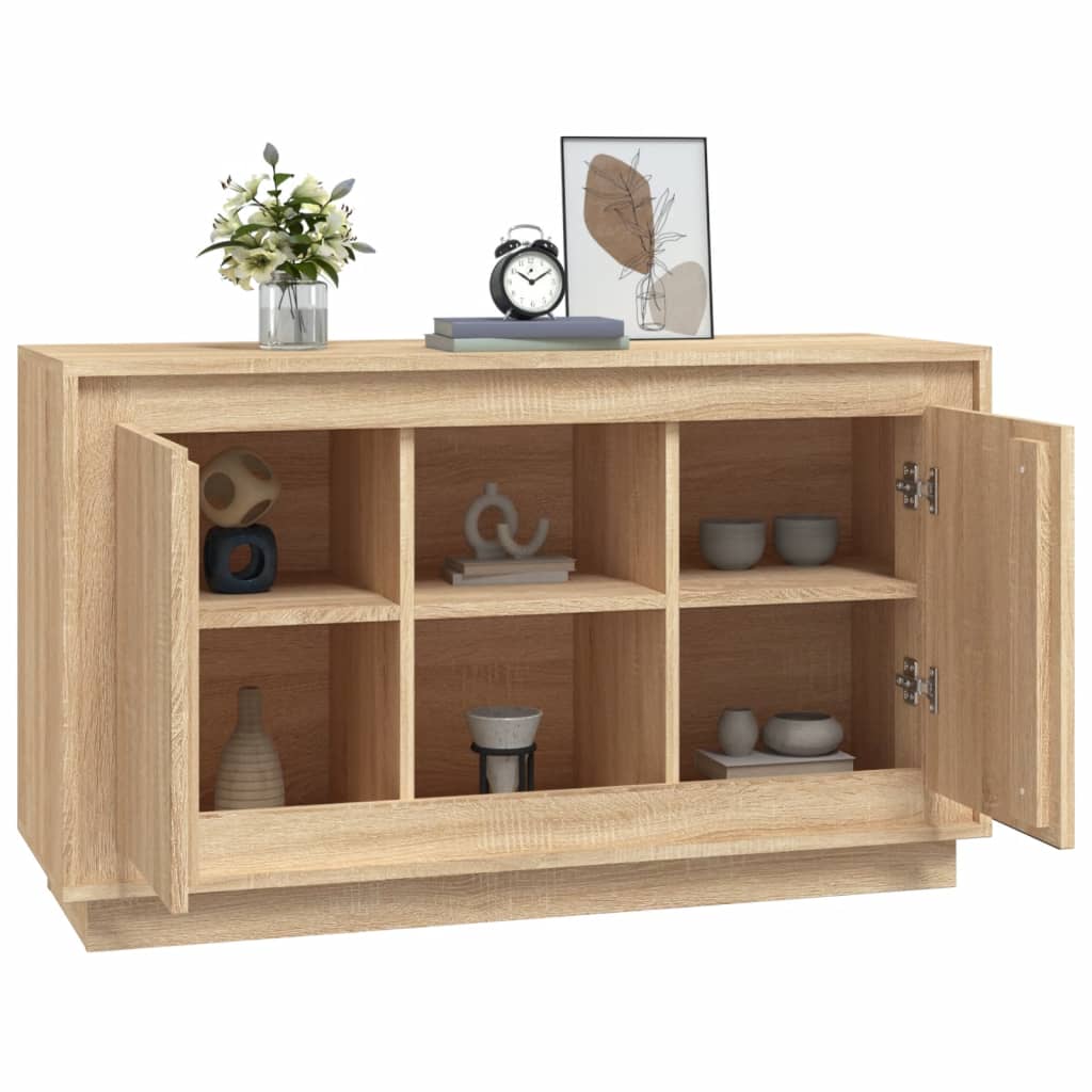 Mit seinem zeitlosen Design ist dieses klassische Sideboard eine ausgezeichnete Bereicherung für Ihr Zuhause. Langlebiges Material: Holzwerkstoff ist ein Material von außergewöhnlicher Qualität mit glatter Oberfläche, das sich durch Festigkeit, Stabilität und Feuchtigkeitsbeständigkeit auszeichnet. Aus Holzwerkstoff gefertigt, lässt sich der Schrank mit einem feuchten Tuch leicht reinigen.Viel Stauraum: Mit 6 Fächern versehen, bietet das Sideboard viel Platz, um verschiedene Alltagssachen gut organisiert und in Reichweite aufzubewahren.Präsentation: Die Oberplatte eignet sich ideal, um Dekoartikel, Fotoalben oder kleine Pflanzen zur Schau zu stellen.Praktische Türen: Du kannst deine wichtigsten Sachen in diesem Wohnzimmertisch aufbewahren, um sie vor Staub zu schützen. Gut zu wissen:Um die Montage so einfach wie möglich zu machen, wird jedes Produkt mit einer Anleitung geliefert. Achtung:Um ein Umkippen zu vermeiden, sollte dieses Produkt mit der mitgelieferten Wandhalterung gesichert werden.