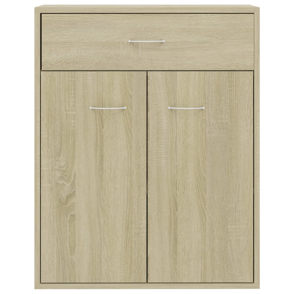 Dieses Sideboard im minimalistischen Design wird eine praktische und zugleich dekorative Ergänzung zu Ihrem Zuhause sein. Mit 2 Türen und 1 Schublade bietet das Sideboard ausreichend Stauraum für Bücher, Multimedia-Geräte und andere Gegenstände. Die starke Tischplatte bietet den idealen Platz zum Aufstellen von Dekorationsartikeln, Fotorahmen oder Topfpflanzen. Es kann auch als Lowboard, Beistellschrank usw. verwendet werden. Dank des hochwertigen Holzwerkstoffs ist dieses Sideboard auf eine lange Lebensdauer ausgelegt. Der Schubladenschrank ist leicht mit einem feuchten Tuch zu reinigen.