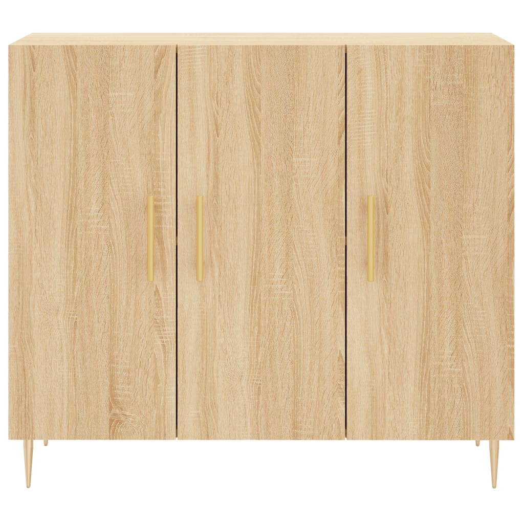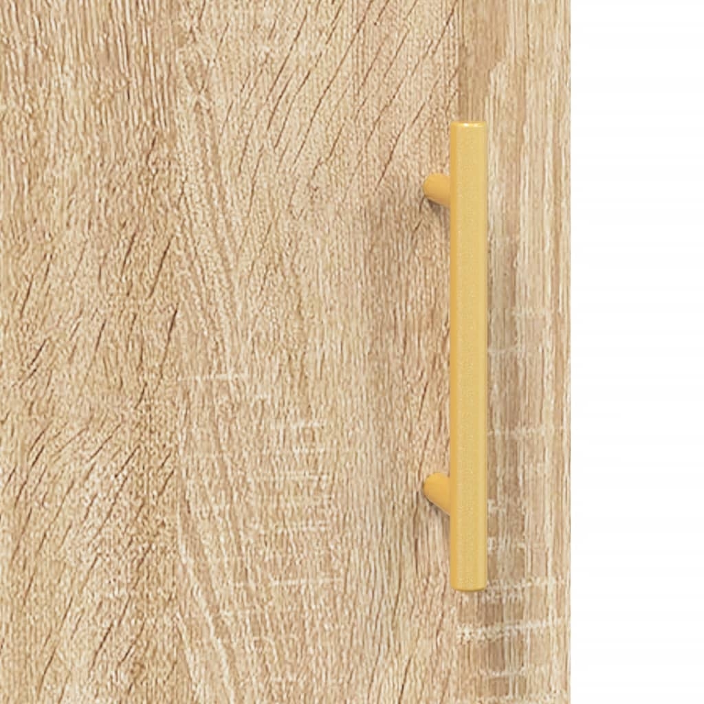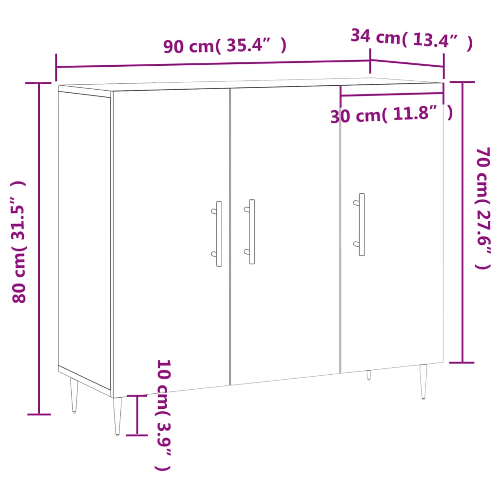 Dieses moderne Sideboard im zeitlosen Look ist eine hervorragende Ergänzung für dein Zuhause. Langlebiges Material: Holzwerkstoff ist ein Material von außergewöhnlicher Qualität mit glatter Oberfläche, das sich durch Festigkeit, Stabilität und Feuchtigkeitsbeständigkeit auszeichnet. Metallbeine: Die Metallbeine verleihen Ihrem Interieur eine moderne und angenehme Note und sorgen gleichzeitig für Stabilität. Viel Stauraum: Das Sideboard bietet viel Platz, um verschiedene Alltagssachen gut organisiert und in Reichweite aufzubewahren.Stabile und robuste Platte: Die Oberplatte dieses Schranks eignet sich perfekt zum Präsentieren von Dekorationsgegenständen, Bilderrahmen und Topfpflanzen. Praktische Tür: Hinter den Türen kannst du deine wichtigsten Sachen staubfrei aufbewahren. Darüber hinaus erleichtern die Griffe an den Türen das Öffnen des Schranks. Achtung:Um ein Umkippen zu vermeiden, sollte dieses Produkt mit der mitgelieferten Wandhalterung gesichert werden.