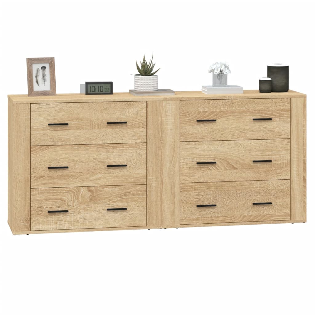 Mit ihrem zeitlosen Design sind diese klassischen Sideboards eine ausgezeichnete Bereicherung für dein Zuhause. Langlebiges Material: Holzwerkstoff ist ein Material von außergewöhnlicher Qualität mit glatter Oberfläche, das sich durch Festigkeit, Stabilität und Feuchtigkeitsbeständigkeit auszeichnet.Viel Stauraum: Der Schrank bietet viel Platz, um verschiedene Alltagssachen gut organisiert und in Reichweite aufzubewahren.Präsentation: Du kannst auch deine Lieblingsfotos, Dekoartikel oder Topfpflanzen auf der Oberplatte des Schrankes zur Schau stellen, um deinen Wohnraum schöner zu gestalten. Gut zu wissen:Um die Montage so einfach wie möglich zu machen, wird jedes Produkt mit einer Anleitung geliefert. Achtung:Um ein Umkippen zu vermeiden, sollte dieses Produkt mit der mitgelieferten Wandhalterung gesichert werden.