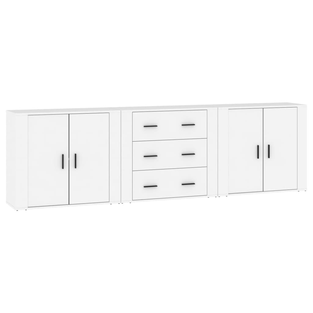 Mit ihrem zeitlosen Design sind diese klassischen Sideboards eine ausgezeichnete Bereicherung für dein Zuhause. Langlebiges Material: Holzwerkstoff ist ein Material von außergewöhnlicher Qualität mit glatter Oberfläche, das sich durch Festigkeit, Stabilität und Feuchtigkeitsbeständigkeit auszeichnet.Viel Stauraum: Der Schrank bietet viel Platz, um verschiedene Alltagssachen gut organisiert und in Reichweite aufzubewahren.Präsentation: Du kannst auch deine Lieblingsfotos, Dekoartikel oder Topfpflanzen auf der Oberplatte des Schrankes zur Schau stellen, um deinen Wohnraum schöner zu gestalten. Gut zu wissen:Um die Montage so einfach wie möglich zu machen, wird jedes Produkt mit einer Anleitung geliefert. Achtung:Um ein Umkippen zu vermeiden, sollte dieses Produkt mit der mitgelieferten Wandhalterung gesichert werden.