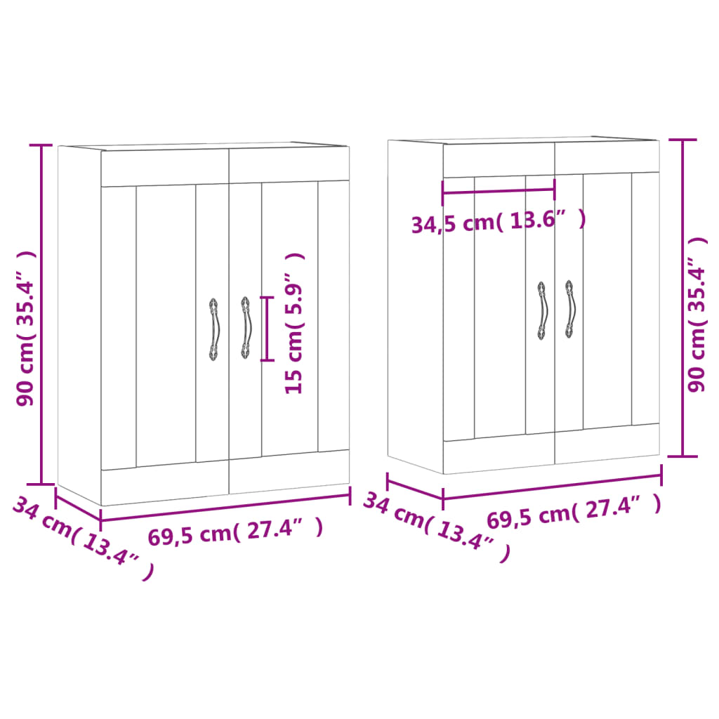 - Abmessungen (pro Stück): 69,5 x 34 x 90 cm (B x T x H)