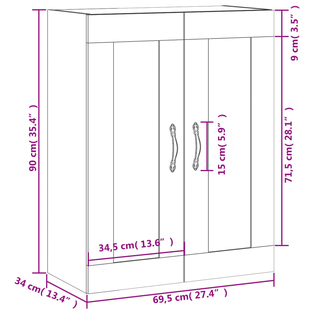 - Abmessungen: 69,5 x 34 x 90 cm (B x T x H)