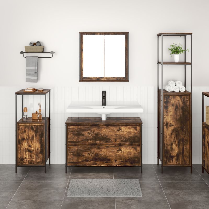 Dieses moderne Badezimmermbelset aus Rauchesche ist die perfekte Lsung fr dein Badezimmer. Es sieht nicht nur toll aus, sondern ist auch funktional. Das stylische Rauchesche-Finish schafft eine tolle, moderne Atmosphre. Mit vielen Regalen und Schrnken bietet es ausreichend Platz fr Handtcher, Toilettenartikel und mehr, damit alles ordentlich bleibt. Aus Holzwerkstoff und Stahl gefertigt, ist es langlebig und sicher durch das Anti-Kipp-Design. Ideal fr Erwachsene, die ihr Badezimmer funktionaler gestalten wollen, ohne den Stil zu vernachlssigen. Dieser flexible Schrank macht dein Zuhause nicht nur schner, sondern erfllt auch die praktischen Anforderungen des Alltags.
