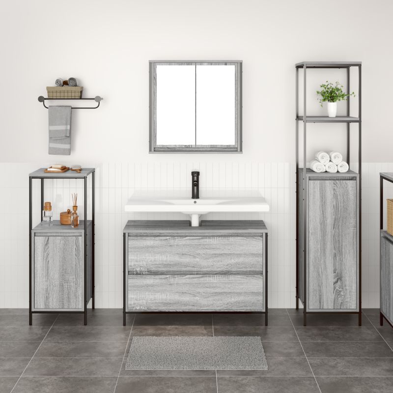 Das moderne Badezimmer Cabinet-Set in Grau Sonoma kombiniert Stil und praktische Nutzung. Es ist perfekt fr Leute, die cleveren Stauraum in ihrem Bad brauchen. Das Set hat viele Teile, mit verschiedenen Schrnken in unterschiedlichen Gren, die dir viel Platz bieten, um alles ordentlich zu halten. Mit seinem eleganten Look und dem grauen Sonoma-Finish sorgt es nicht nur fr Ordnung, sondern bringt auch gute Stimmung ins Badezimmer. Ideal fr kleine bis mittelgroe Bder, bringt dieses Set jede Menge Organisation. Es ist aus robustem Holzwerkstoff gefertigt, was Langlebigkeit garantiert und gleichzeitig modern aussieht. Jeder Schrank hat stabile Stahlfe fr zustzliche Stabilitt. Egal, ob du dein Bad neu gestalten oder cleveren Stauraum hinzufgen mchtest, dieses Set ist genau das Richtige.