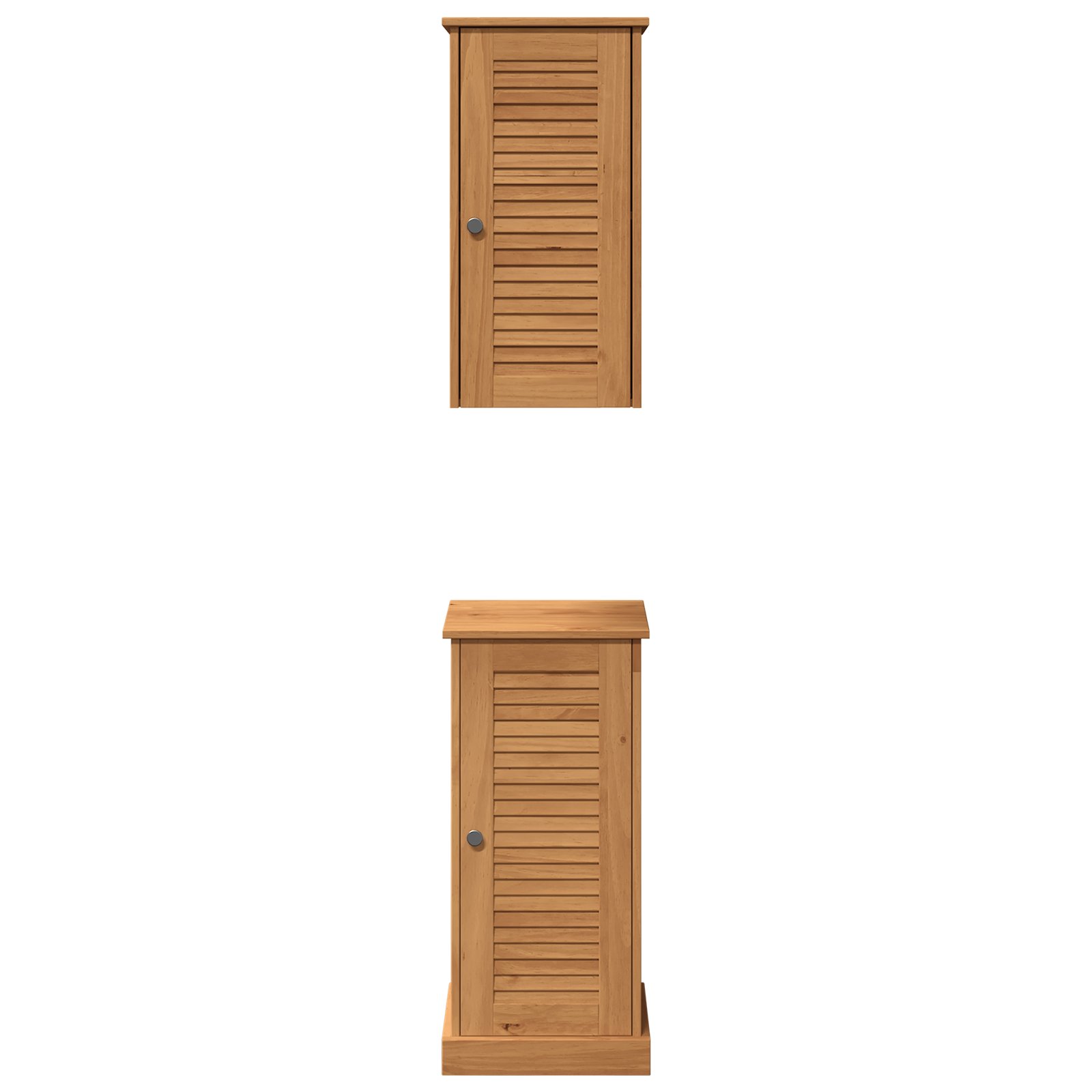 Diese Regale- und Aufbewahrungseinheit ist genau das, was du für dein Badezimmer brauchst, wenn du Stil und Funktionalität haben willst. Ihr rustikaler Charme sorgt für eine warme, klassische Atmosphäre, die wunderbar zu verschiedenen Dekoren passt. Die rechteckige Form und der geräumige Innenraum machen sie zu einem praktischen Ort, um Toilettenartikel, Handtücher oder Deko zu verstauen. Außerdem bringt die glatte Oberfläche eine angenehme Ausstrahlung, perfekt für alle, die ein ordentliches, natürliches Ambiente lieben. Materialqualität: Aus solidem Kiefernholz gefertigt, zeigt diese Aufbewahrungseinheit schöne natürliche Maserungen und ist stark und langlebig. Das Holz sorgt für Stabilität und Strapazierfähigkeit, während die rustikale Oberfläche gut in traditionelle und moderne Häuser passt. Praktisches Design: Mit Scharnier- und Regalbrechtüren bietet dieser Schrank eine bequeme Aufbewahrung für deine Badezimmerutensilien. Die Knöpfe sehen nicht nur gut aus, sondern erleichtern auch den Zugriff auf deine Sachen, und die rechteckige Form passt bequem in kleinere Räume. Kompakte Vielseitigkeit: Mit den Maßen 37 x 34 x 80 cm bietet diese Einheit Stauraum, ohne den Raum zu überladen. Sie ist ideal für kleine bis mittelgroße Badezimmer, und ihr rustikaler Stil passt zu vielen verschiedenen Dekoren. Die matte Oberfläche sieht ansprechend und stabil aus. Bauteile-Konfiguration: Mit veredelten Rückwänden und Regalbrett ist die Einheit sowohl optisch ansprechend als auch super praktisch. Der rustikale Stil setzt besondere Akzente und hebt ihren soliden Look hervor, perfekt für Räume mit einer warmen, natürlichen Atmosphäre. Einfacher Aufbau: Dieser Schrank ist darauf ausgelegt, lange zu halten und lässt sich mit einem Schraubendreher und einer Bohrmaschine zusammenbauen. Es wird empfohlen, dies zu zweit zu machen. Die Wandverankerung ist für die Sicherheit wichtig, damit du dir keine Sorgen um Umkippen machen musst.