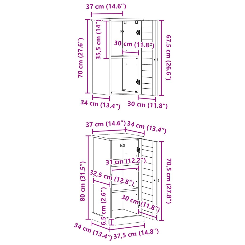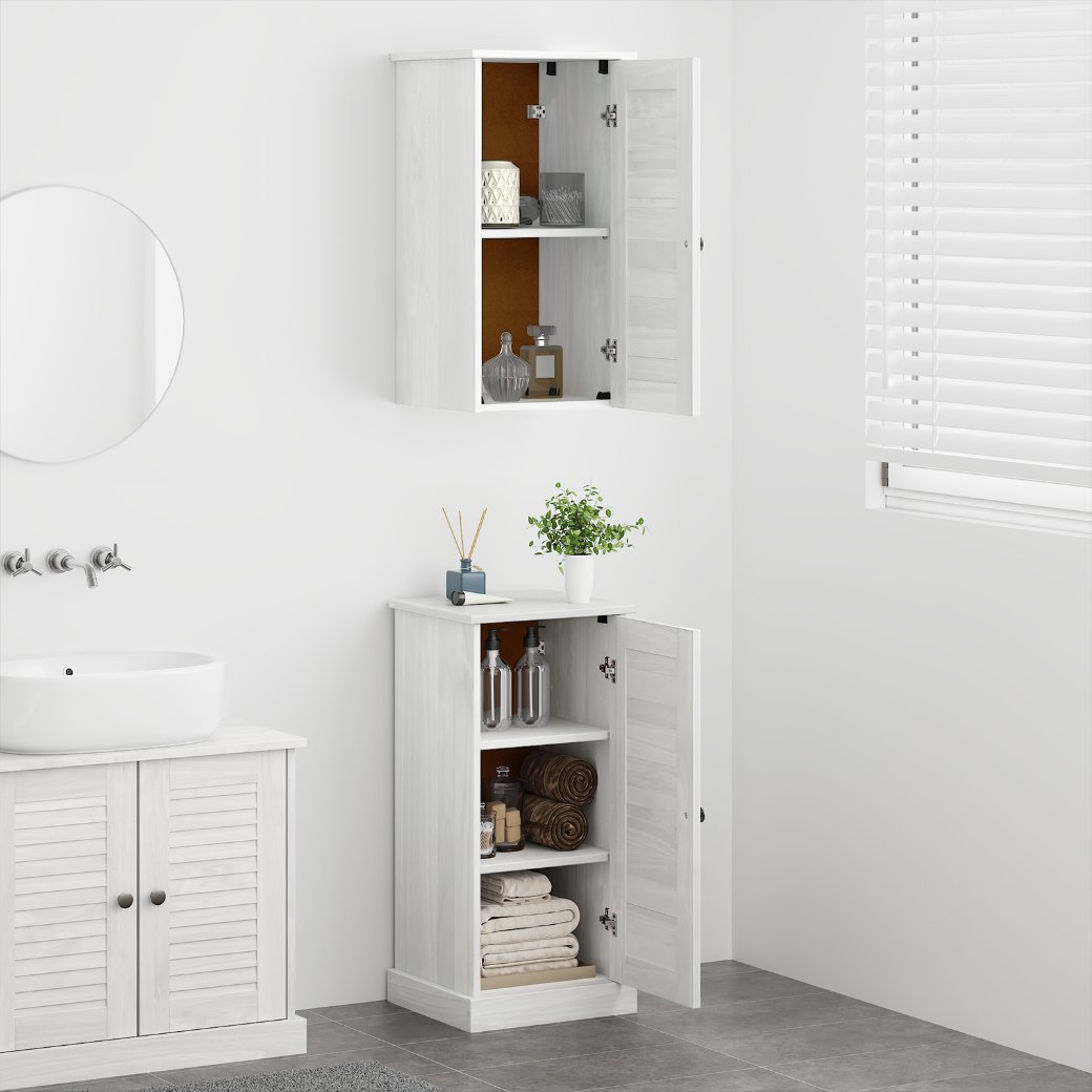 Diese Regale- und Aufbewahrungseinheit ist genau das, was du für dein Badezimmer brauchst, wenn du Stil und Funktionalität haben willst. Ihr rustikaler Charme sorgt für eine warme, klassische Atmosphäre, die wunderbar zu verschiedenen Dekoren passt. Die rechteckige Form und der geräumige Innenraum machen sie zu einem praktischen Ort, um Toilettenartikel, Handtücher oder Deko zu verstauen. Außerdem bringt die glatte Oberfläche eine angenehme Ausstrahlung, perfekt für alle, die ein ordentliches, natürliches Ambiente lieben. Materialqualität: Aus solidem Kiefernholz gefertigt, zeigt diese Aufbewahrungseinheit schöne natürliche Maserungen und ist stark und langlebig. Das Holz sorgt für Stabilität und Strapazierfähigkeit, während die rustikale Oberfläche gut in traditionelle und moderne Häuser passt. Praktisches Design: Mit Scharnier- und Regalbrechtüren bietet dieser Schrank eine bequeme Aufbewahrung für deine Badezimmerutensilien. Die Knöpfe sehen nicht nur gut aus, sondern erleichtern auch den Zugriff auf deine Sachen, und die rechteckige Form passt bequem in kleinere Räume. Kompakte Vielseitigkeit: Mit den Maßen 37 x 34 x 80 cm bietet diese Einheit Stauraum, ohne den Raum zu überladen. Sie ist ideal für kleine bis mittelgroße Badezimmer, und ihr rustikaler Stil passt zu vielen verschiedenen Dekoren. Die matte Oberfläche sieht ansprechend und stabil aus. Bauteile-Konfiguration: Mit veredelten Rückwänden und Regalbrett ist die Einheit sowohl optisch ansprechend als auch super praktisch. Der rustikale Stil setzt besondere Akzente und hebt ihren soliden Look hervor, perfekt für Räume mit einer warmen, natürlichen Atmosphäre. Einfacher Aufbau: Dieser Schrank ist darauf ausgelegt, lange zu halten und lässt sich mit einem Schraubendreher und einer Bohrmaschine zusammenbauen. Es wird empfohlen, dies zu zweit zu machen. Die Wandverankerung ist für die Sicherheit wichtig, damit du dir keine Sorgen um Umkippen machen musst.