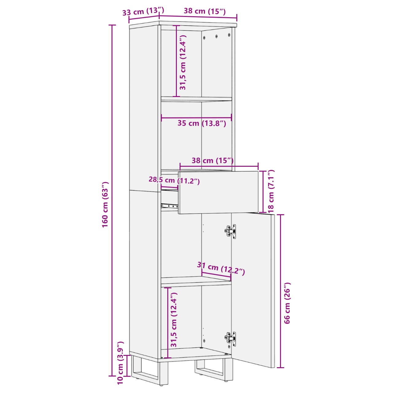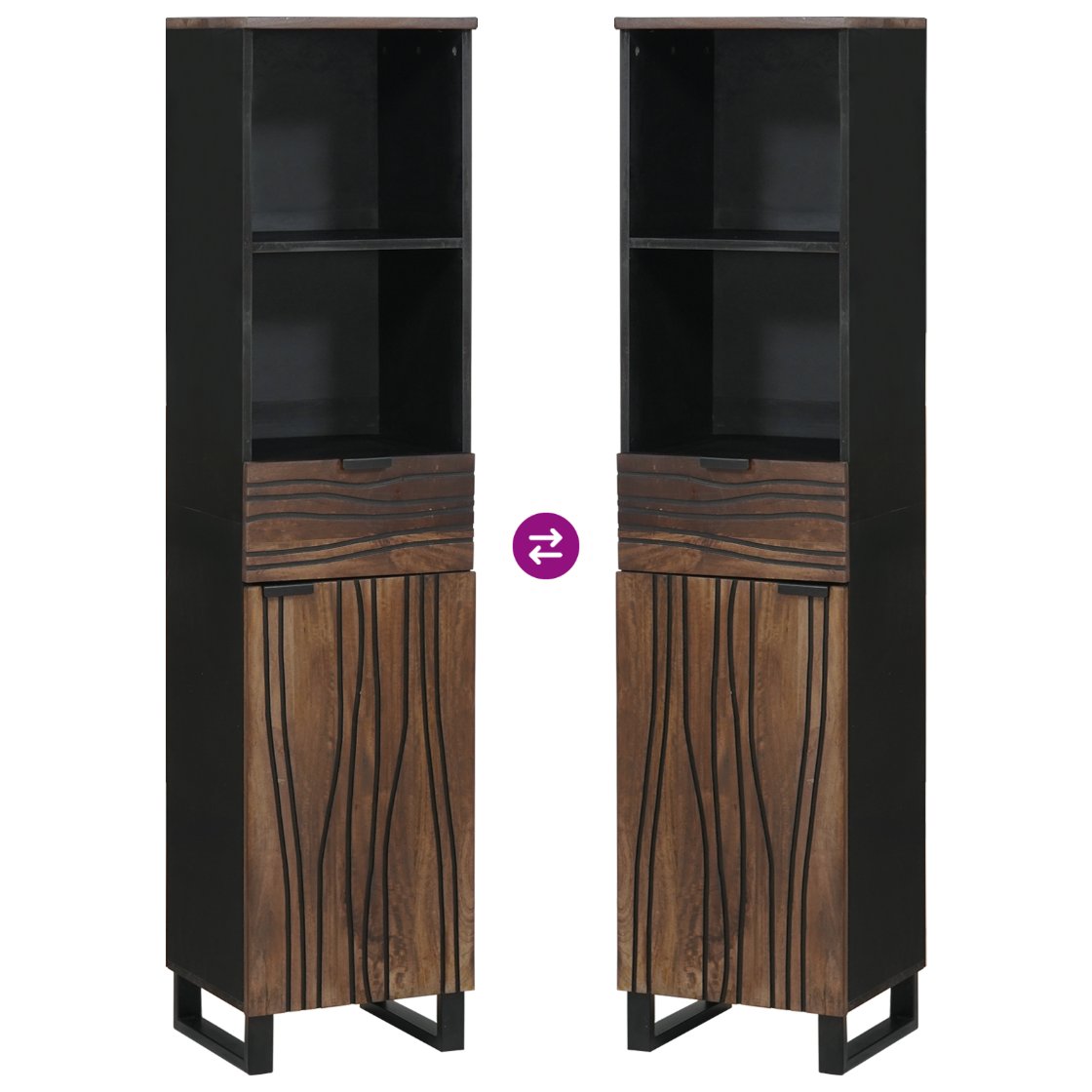 Dieser coole Stauraumschrank hilft dir, deine Badezimmerutensilien ordentlich zu halten. Mit seinem klassischen Stil und der rechteckigen Form passt er super in deine Einrichtung und bringt einen Hauch von Eleganz. Stylisch und praktisch bietet der Schrank genügend Platz für Toilettenartikel, Handtücher und mehr und erfüllt all deine Aufbewahrungsbedürfnisse. Robuste Hölzer: Der Badezimmer-Schrank besteht hauptsächlich aus massivem Mango-Holz, das für seine Langlebigkeit bekannt ist. Seine schöne Textur und die Muster sehen toll aus und versprechen, dass er dem täglichen Gebrauch standhält. Die Kombination aus Mango- und Akazienholz sorgt für Stabilität und hält seine Qualität, selbst wenn die Luftfeuchtigkeit schwankt. Zeitloses Design: Genieße den klassischen Charme mit einem Design, das tolle Details bietet. Der Schrank hat gestreifte Muster aus parallelen Linien, die eine schöne Symmetrie schaffen und ihn zum Blickfang in deinem Badezimmer machen. Die warmen Farbtöne passen zu den meisten Badezimmerstilen und bringen eine elegante Note. Viel Stauraum: Mit mehreren Schubladen und Türen bietet dieser Schrank genug Platz, um deine Badezimmer-Utensilien zu organisieren und auszustellen. Die clever gestalteten Fächer halten deinen Raum ordentlich und schaffen Platz für alles - perfekt für den Alltag und besondere Anlässe. Einfache Montage: Du musst zwar etwas zusammenbauen, aber du brauchst nur einen Hammer. Die mitgelieferte Anleitung macht es dir leicht, damit du deine neue Aufbewahrungslösung schnell nutzen kannst, ganz ohne zusätzliches Werkzeug. Pflege und Wartung: Die Oberfläche des Schranks bleibt mit ein wenig Pflege schön. Ein schnelles Abwischen mit einem feuchten Tuch entfernt Staub und Schmutz, sodass er auch über die Jahre toll aussieht. Halte am besten einen regelmäßigen Reinigungsplan ein, um ihn in Topform zu halten.