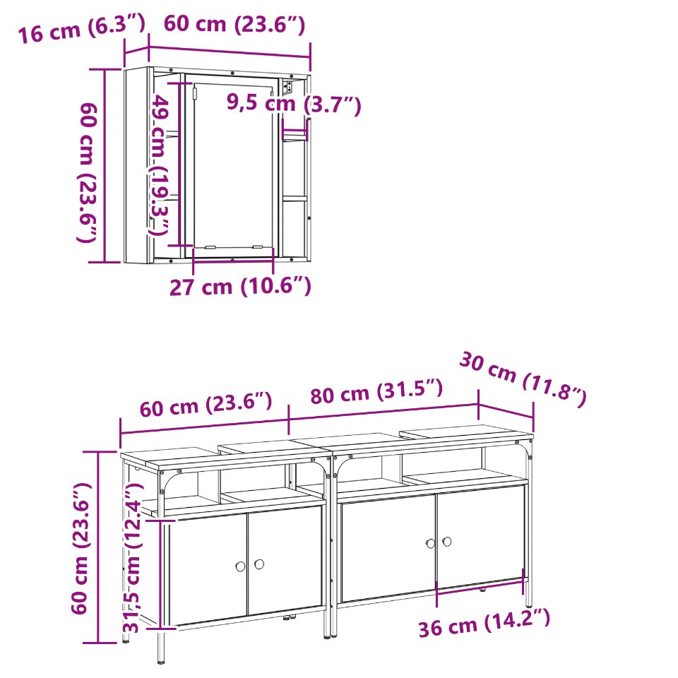 Dieses moderne Spiegelschrank-Set ist genau das, was du brauchst, wenn du Stil und Praktikabilität in deinem Badezimmer vereinen möchtest. Mit seinen schlanken Linien passt es perfekt zur restlichen Deko. Es ist so konzipiert, dass es viel Stauraum bietet, ohne zu viel Platz einzunehmen – perfekt für kleine Räume. Der Spiegel reflektiert das Licht und lässt dein Badezimmer heller und geräumiger wirken. Holzwerkstoff-Konstruktion Der Schrank ist aus robustem Holzwerkstoff gemacht, der gut gegen Verformungen schützt. Perfekt für Badezimmer, wo Feuchtigkeit ein Thema ist. Sein moderner Look passt gut zu aktuellen Designs. Umfassende Komponenten inklusive Du bekommst einen Spiegelschrank und zwei Waschbeckenunterschränke – eine komplette Stauraumlösung. Der Spiegel bringt zusätzliches Licht und verbindet alles miteinander. Die Waschbeckenunterschränke helfen dir, deine Essentials ordentlich und griffbereit zu halten. Dieses Set deckt all deine Stauraumbedürfnisse ab! Funktionale Eigenschaften Der Schrank hat Regale, Türen und eine spiegelnde Oberfläche. Damit hältst du all deine Toilettenartikel und Reinigungsmittel aus dem Blickfeld, hast sie aber schnell zur Hand, wenn du sie brauchst. Der Spiegel hat nicht nur eine praktische Funktion, sondern lässt den Raum auch größer wirken. Die schlanken Griffe und das wandmontierte Design machen es super benutzerfreundlich. Vielseitige Nutzung Perfect für jedes Badezimmer, bietet dir dieses Set flexible Stauraumoptionen. Das kompakte Design passt zu verschiedensten Badezimmergrößen und -layouts. Egal, ob du dich morgens frisch machst oder abends entspannst, dieser Schrank hilft dir, kleine Gegenstände und Essentials zu verstauen. Einfach zu pflegen Um den Schrank in gutem Zustand zu halten, solltest du ihn an der Wand befestigen, um ein Umkippen zu verhindern. Die Oberflächen lassen sich leicht mit einem trockenen Tuch abwischen, sodass die Reinigung total einfach ist. So bleibt dein Schrank über Jahre hinweg ein wichtiger Bestandteil deines Badezimmers.