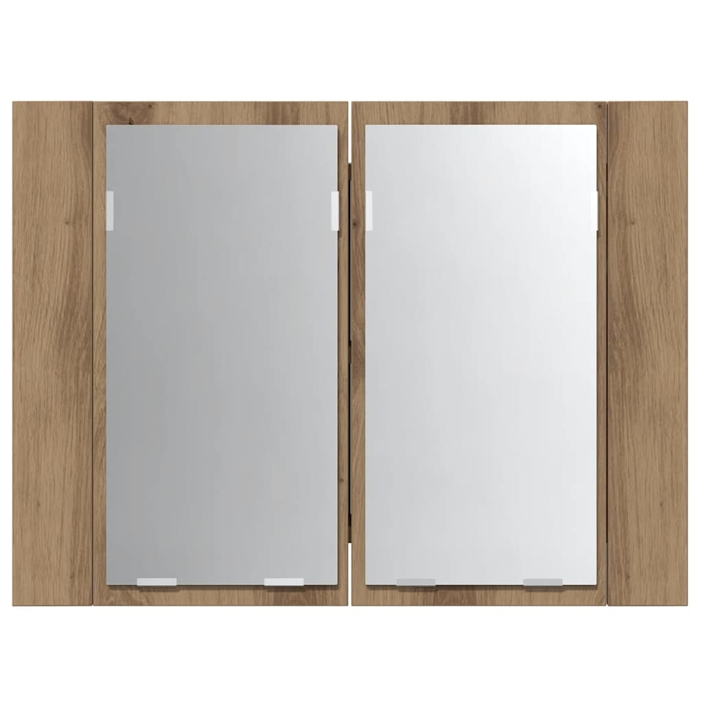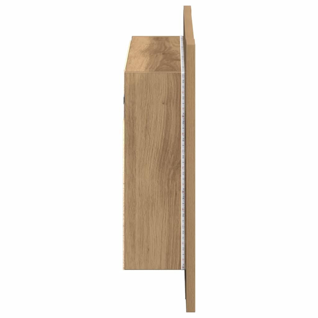 Setzen Sie ästhetische Akzente mit diesem LED-Spiegelschrank, der perfekt für Ihr Badezimmer geeignet ist! Langlebiges Material: Der Rahmen des Spiegelschranks ist aus Holzwerkstoff gefertigt. Holzwerkstoff ist ein Material von außergewöhnlicher Qualität mit glatter Oberfläche, das sich durch Festigkeit, Stabilität und Feuchtigkeitsbeständigkeit auszeichnet.LED-Beleuchtung: Dieser Spiegelschrank ist mit lebendigen LEDs ausgestattet. Dank der verschiedenen Einstellungsmöglichkeiten kannst du die Lichtfarbe mühelos wechseln und diese sogar auf automatische Anpassung einstellen.Platzsparend: Der Schminkspiegel mit Stauraum lässt sich an der Wand montieren, um zusätzlichen Platz zu schaffen. Auf diese Weise kannst du die Bodenfläche maximieren und für Ordnung im Raum sorgen.Einfache Montage: Dieser Schminkschrank mit Spiegel lässt sich mit den mitgelieferten Halterungen ganz einfach an der Wand befestigen.Reichlich Stauraum: Dieser Spiegelschrank verfügt über 2 Fächer, die viel Platz bieten, um deine Sachen ordentlich aufzubewahren. Gut zu wissen:Schrauben und Dübel für die Montage an der Wand sind nicht enthalten. Passendes Montagezubehör muss separat gekauft werden. Wenn du dir bezüglich der Montage nicht sicher bist, wende dich bitte an einen Fachmann. Bitte lies und befolge jeden Schritt in der Anleitung.Das Produkt verfügt über einen USB-Anschluss, für den eine zertifizierte 5V-USB-Stromquelle erforderlich ist (nicht im Lieferumfang enthalten).