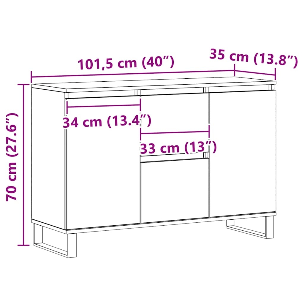 Dieses trendige Sideboard im zeitlosen Look ist eine hervorragende Ergänzung für dein Zuhause.Langlebiges Material: Der Holzwerkstoff ist von außergewöhnlicher Qualität, hat eine glatte Oberfläche und zeichnet sich außerdem durch Festigkeit, Stabilität und Feuchtigkeitsbeständigkeit aus. Der Schrank aus Holzwerkstoff lässt sich leicht mit einem feuchten Tuch reinigen.Reichlich Stauraum: Die Kommode bietet reichlich Stauraum, um die verschiedenen Dinge des täglichen Bedarfs gut organisiert und in Reichweite aufzubewahren.Präsentation: Die Oberseite des Schranks eignet sich perfekt zum Ausstellen von Dekoartikeln, Bilderrahmen und Topfpflanzen.Beine aus Eisen: Die Eisenbeine des Beistellschranks sorgen für Robustheit und Stabilität.Achtung:Um ein Umkippen zu verhindern, muss dieses Produkt mit einer Wandhalterung (nicht im Lieferumfang enthalten) gesichert werden.