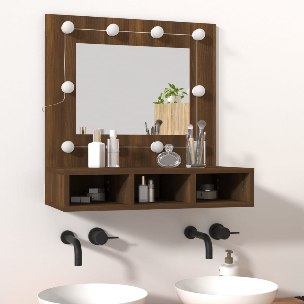 Verleihe deinem Zimmer einen Hauch angenehmer Ästhetik mit diesem Spiegelschrank mit LED! Langlebiges Material: Holzwerkstoff ist ein Material von außergewöhnlicher Qualität mit glatter Oberfläche, das sich durch Festigkeit, Stabilität und Feuchtigkeitsbeständigkeit auszeichnet.LED-Leuchten: Der Spiegelschrank verfügt auch über LED-Leuchten mit USB, die einfach von Warmweiß auf Kaltweiß umgeschaltet werden können. Dabei beleuchten die LED-Lampen rund um den Spiegel dein Gesicht optimal.Flexible Montage: Dieser LED-Spiegelschrank lässt sich auf deiner Kommode platzieren oder platzsparend an der Wand befestigen.Viel Stauraum: Die offenen Fächer bieten dir reichlich Platz zur Aufbewahrung all deiner Schönheitsprodukte. Hinweis:Jedes Produkt wird mit einer Montageanleitung in der Verpackung für eine einfache Montage geliefert.Schrauben und Dübel für die Wandbefestigung sind nicht enthalten. Suchen und verwenden Sie die für Ihre Wände geeigneten Schrauben und Dübel. Wenn Sie unsicher sind, suchen Sie professionelle Hilfe. Lesen und befolgen Sie jeden Schritt der Anleitung sorgfältig.