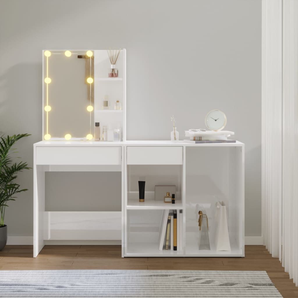 Es ist ein schlichter aber praktischer LED-Schminktisch mit Schrank, der perfekt zu jeder Inneneinrichtung passt. Langlebiges Material: Der LED-Schminktisch mit Schrank ist aus Holzwerkstoff gefertigt. Der Holzwerkstoff ist von außergewöhnlicher Qualität und weist eine glatte Oberfläche auf. Der Frisiertisch zeichnet sich durch Festigkeit, Stabilität und Feuchtigkeitsbeständigkeit aus.LED-Leuchten: Der Kosmetiktisch mit Schrank verfügt auch über LED-Lampen mit USB, die einfach von Warmweiß auf Kaltweiß umgeschaltet werden können. Der Spiegel mit LED-Beleuchtung sorgt für optimale Sicht.Viel Stauraum: Der Schminktisch mit Aufbewahrungsschrank bietet viel Stauraum – perfekt für die ordentliche Aufbewahrung von Make-up, Accessoires, Taschen und Schönheitsprodukten. Warnung:Um das Umkippen zu verhindern, muss dieses Produkt mit der mitgelieferten Wandhalterung gesichert werden. Hinweis:Jedes Produkt wird mit einer Montageanleitung in der Verpackung für eine einfache Montage geliefert.
