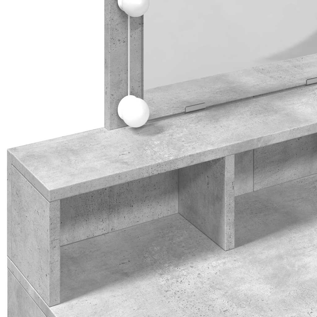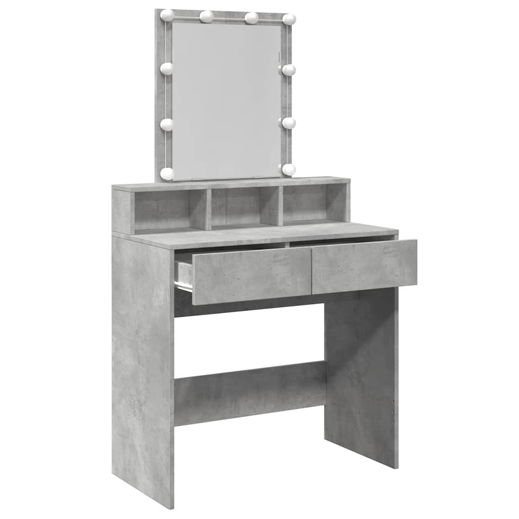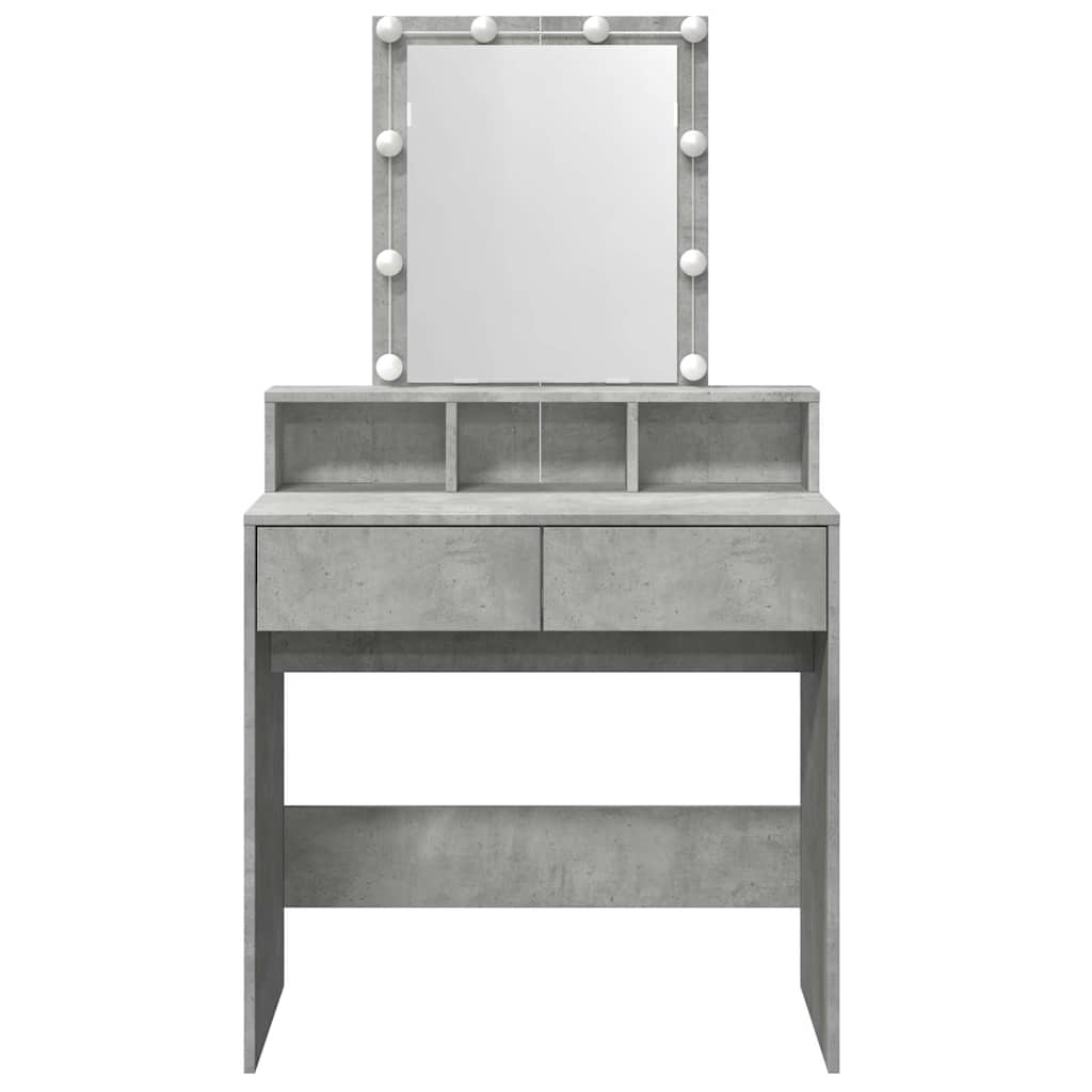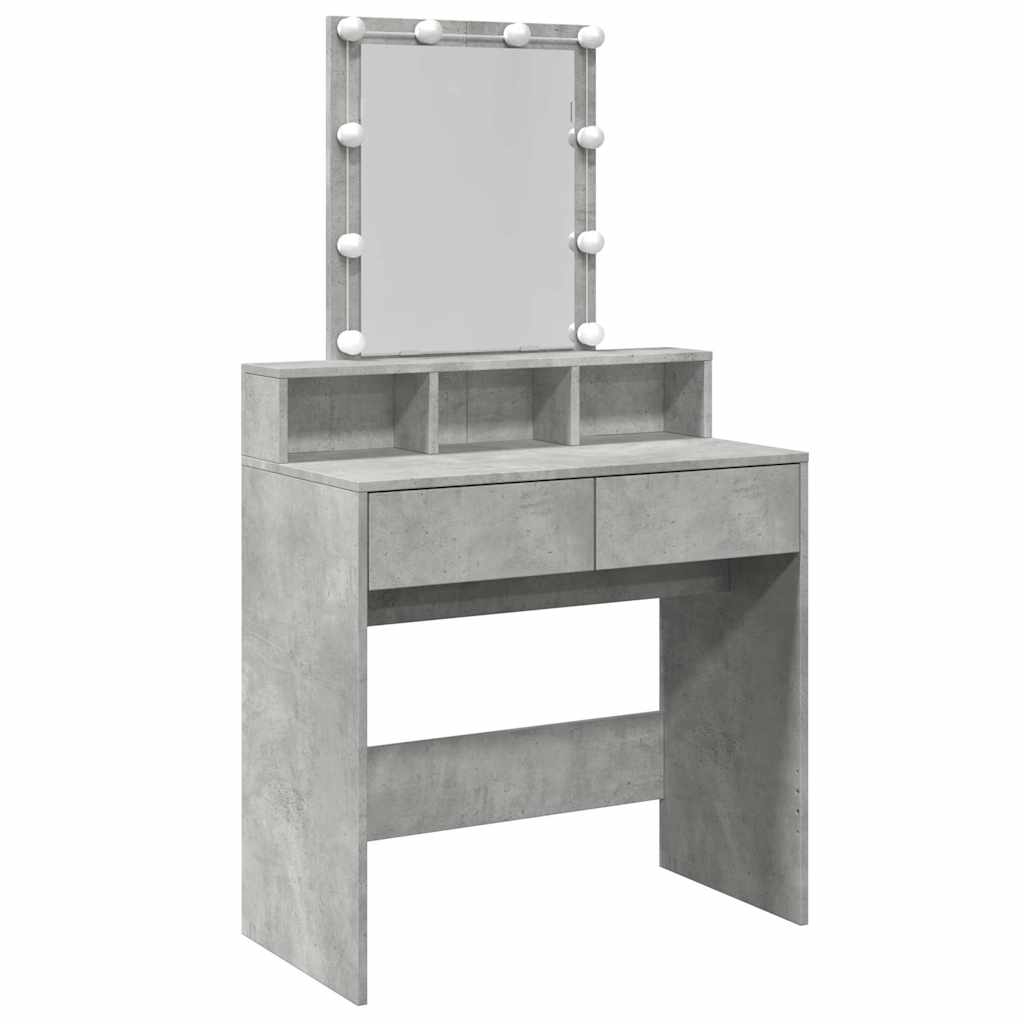 Dieser Schminktisch ist eine großartige Ergänzung zu deinem Schlafzimmer und bietet auch Platz zur griffbereiten Aufbewahrung deiner Kosmetika! Starkes und langlebiges Material: Holzwerkstoff ist ein langlebiges und robustes Material mit einer glatten Oberfläche, das gegen Feuchtigkeit, Verformung und Rissbildung beständig ist, wodurch es eine zuverlässigen Wahl für die Herstellung von Möbeln ist.Viel Stauraum: Der Schminktisch mit 2 Schubladen und 3 Fächern bietet viel Platz, um verschiedene Alltagssachen gut organisiert und in Reichweite aufzubewahren.Allzweckspiegel: Der schöne Spiegel bietet eine klare Sicht beim Auftragen von Make-up und verleiht dem Schminktisch eine elegante Note.LED-Leuchten: Der Schminktisch verfügt auch über LED-Leuchten mit USB, die einfach von Warmweiß auf Kaltweiß umgeschaltet werden können. Dabei beleuchten die LED-Lampen rund um den Spiegel dein Gesicht optimal. Achtung:Um ein Umkippen zu vermeiden, sollte dieses Produkt mit der mitgelieferten Wandhalterung gesichert werden.