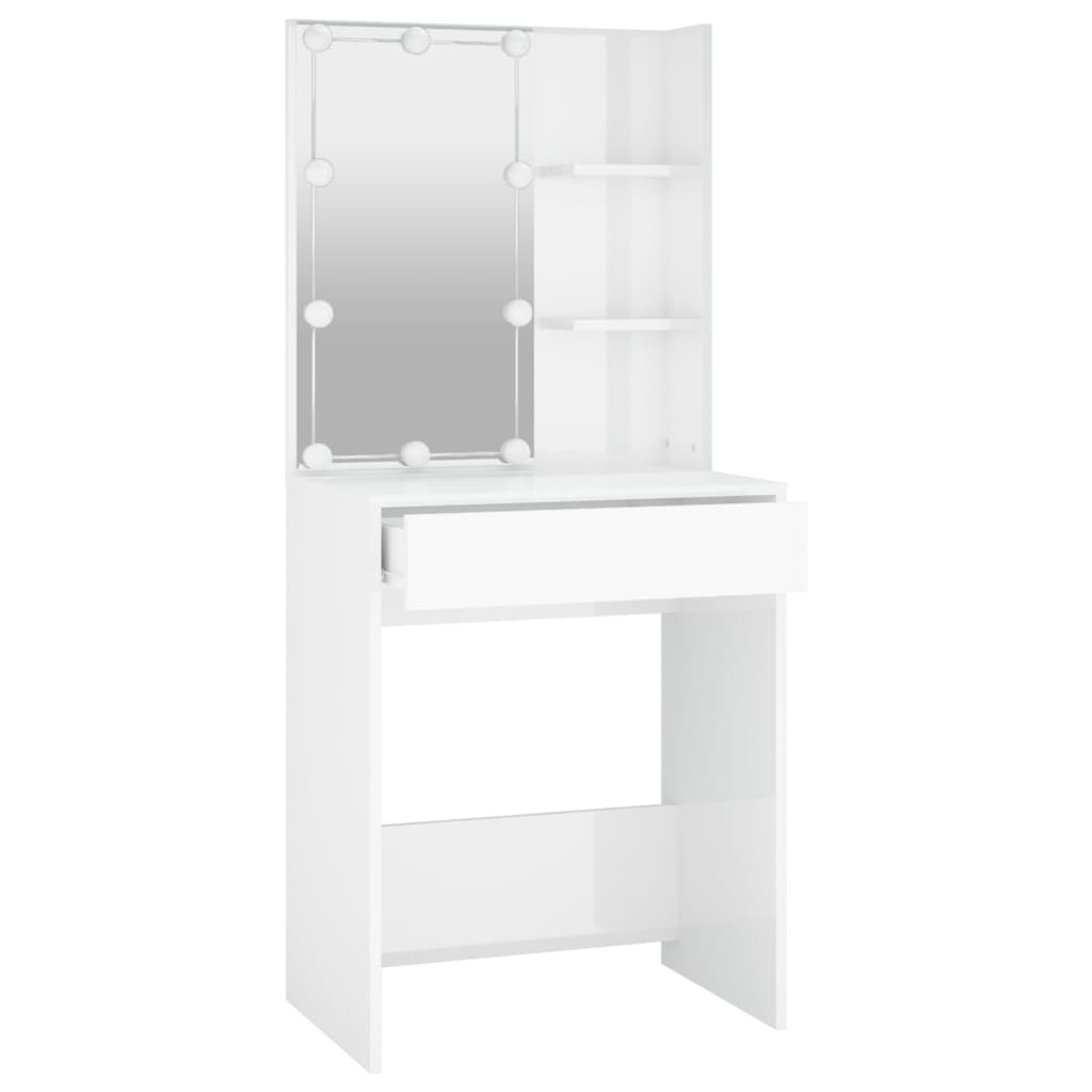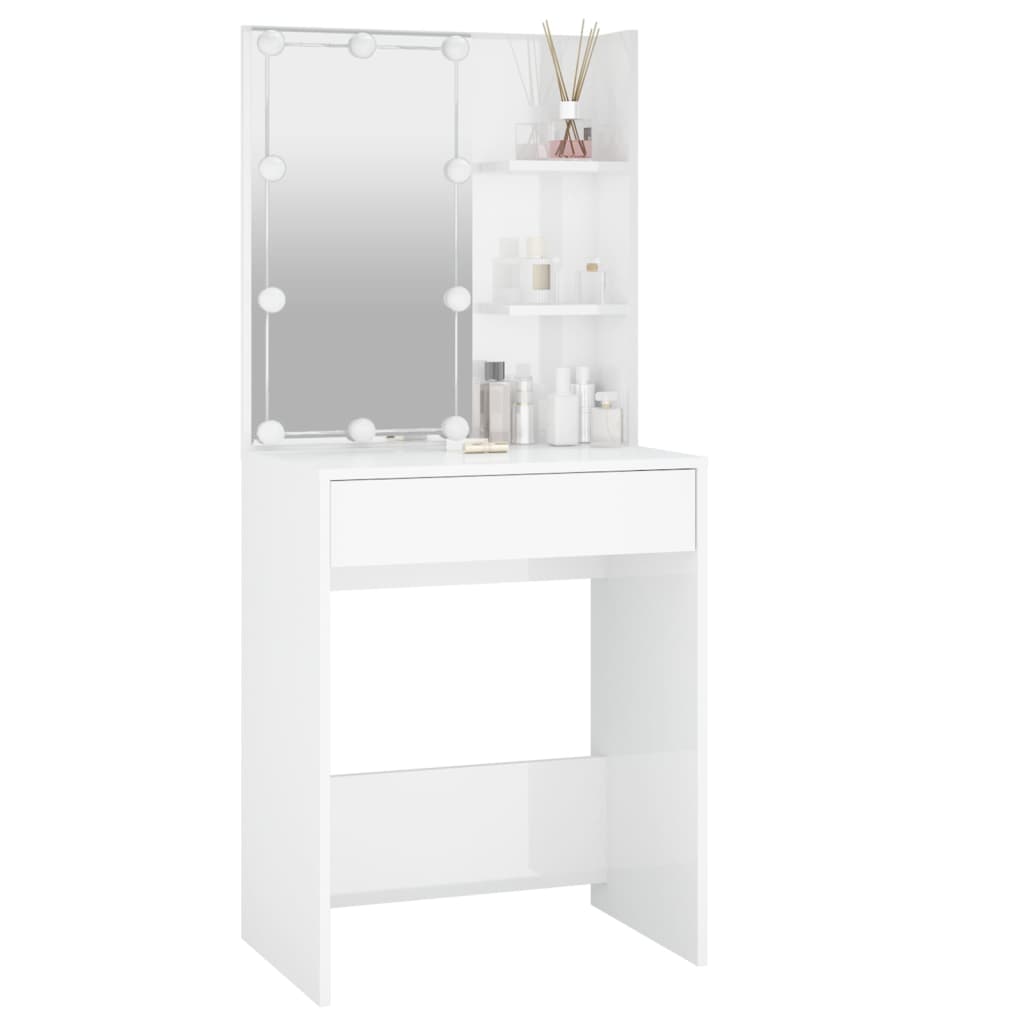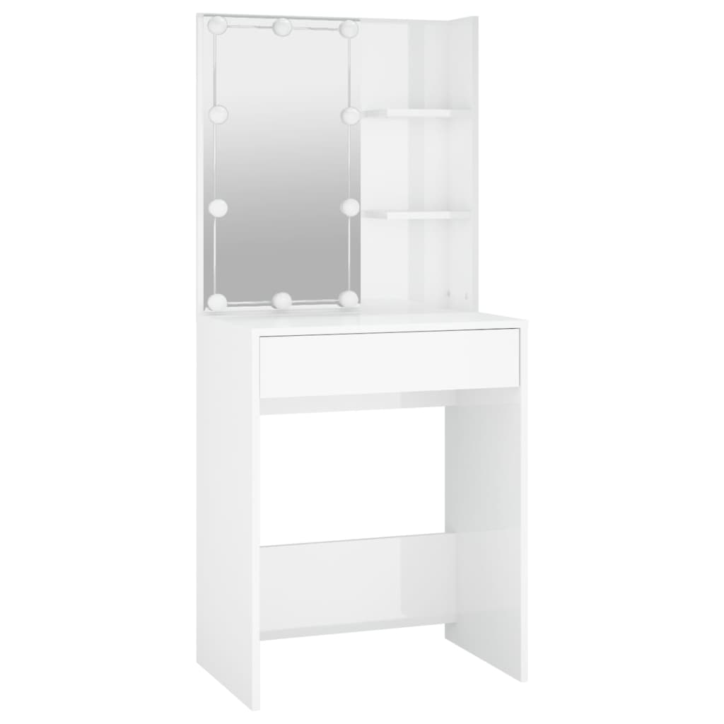 Mit seinen raffinierten geraden Linien und seiner asymmetrischen Form voller Einzigartigkeit wird dieser Schminktisch mit Sicherheit alle Blicke auf sich ziehen! Langlebiges Material: Holzwerkstoff ist ein Material von außergewöhnlicher Qualität mit glatter Oberfläche, das sich durch Festigkeit, Stabilität und Feuchtigkeitsbeständigkeit auszeichnet.LED-Leuchten: Der Kosmetiktisch verfügt auch über LED-Lampen mit USB, die einfach von Warmweiß auf Kaltweiß umgeschaltet werden können. Dabei beleuchten die LED-Lampen rund um den Spiegel dein Gesicht optimal.Viel Stauraum: Eine geräumige Schublade und zwei Ablagen über der Tischplatte bieten reichlich Stauraum, um deine Gegenstände ordentlich aufzubewahren und für Ordnung in deinem Zimmer zu sorgen.Warnung:Um das Umkippen zu verhindern, muss dieses Produkt mit der mitgelieferten Wandhalterung gesichert werden. Hinweis:Jedes Produkt wird mit einer Montageanleitung in der Verpackung für eine einfache Montage geliefert.