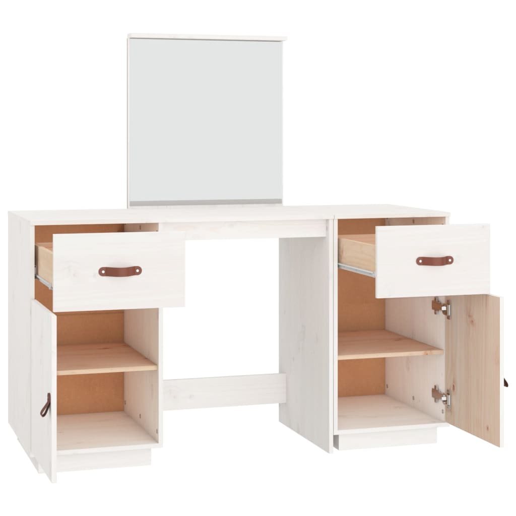 Dieser klassische Schminktisch aus Holz mit Spiegel ist eine ausgezeichnete Ergänzung zu deinem Schlafzimmer. Denn hier kannst du deine Kosmetika griffbereit aufbewahren! Massives Kiefernholz: Massives Kiefernholz ist ein wunderschönes Naturmaterial. Kiefernholz weist eine gerade Maserung auf und die Aststellen verleihen dem Material seine charakteristische, rustikale Optik.Viel Stauraum: Der Schminktisch bietet reichlich Platz, um Make-up, Schmuck und Schönheitsprodukte griffbereit aufzubewahren.Allzweckspiegel: Der mitgelieferte schöne Spiegel bietet eine klare Sicht beim Auftragen von Make-up und verleiht dem Schminktisch eine elegante Note.Praktische Tür: Du kannst deine wichtigsten Sachen in diesem Schminktisch hinter der Tür verstecken, um sie vor Staub zu schützen.Vielseitig einsetzbar: Dieser Schminktisch eignet sich für verschiedene Bereiche, sei es Schlafzimmer, Ankleide oder jeden anderen Raum, in dem du es aufstellen möchtest. Achtung:Um das Umkippen zu verhindern, muss dieses Produkt mit der mitgelieferten Wandhalterung gesichert werden. Hinweis:Jedes Produkt wird mit einer Montageanleitung in der Verpackung für eine einfache Montage geliefert.