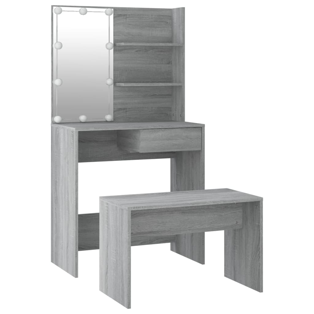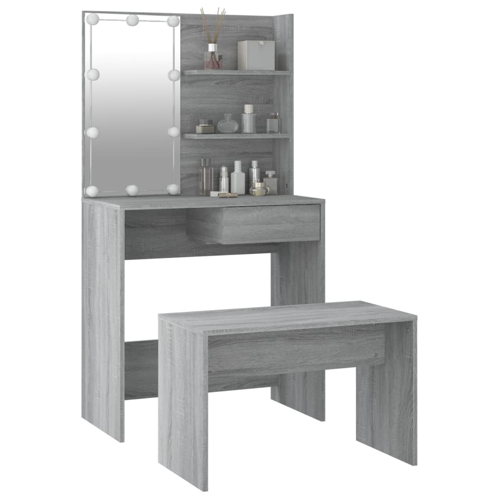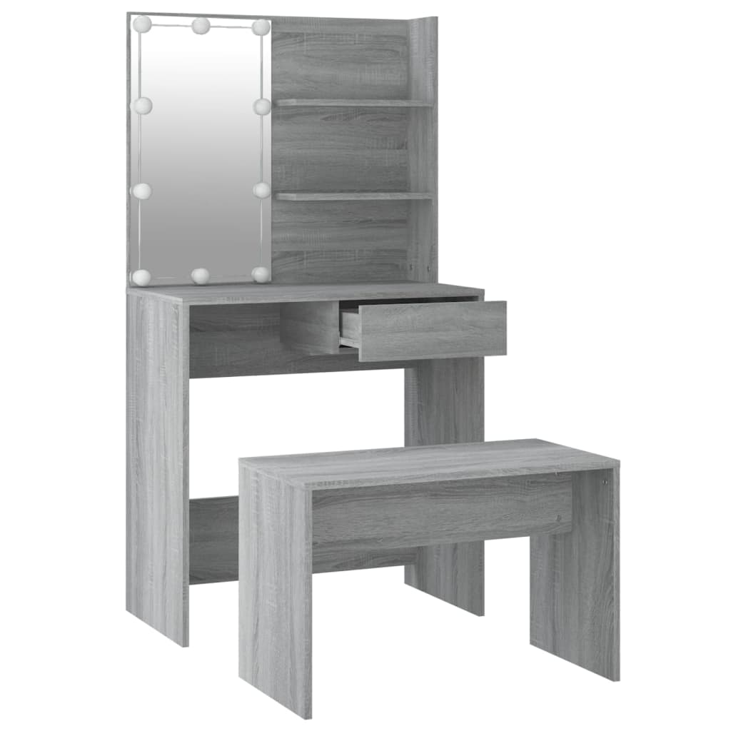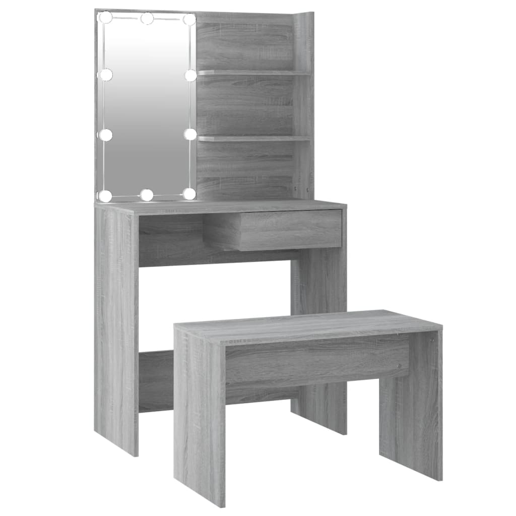 Das trendige Schminktisch-Set verleiht deinem Schlafzimmer einen zeitlosen, raffinierten Look. Das Schminktisch-Set mit LED-Beleuchtung ist eine perfekte Ergänzung für deine Schlafzimmereinrichtung und hält auch deine Kosmetika immer griffbereit! Stabiles Material: Holzwerkstoff ist ein Material hoher Qualität mit glatter Oberfläche, das sich durch Festigkeit, Stabilität und Feuchtigkeitsbeständigkeit auszeichnet.Allzweckspiegel: Der Schminktisch mit Spiegel ist perfekt für deine tägliche Schönheitsroutine. Mit dem Spiegel kannst du dein Gesicht pflegen und auch dein Make-up auftragen!Viel Stauraum: Der Schminktisch mit Hocker bietet viel Platz für einfachen Zugriff auf Make-up, Schmuck und anderen Accessoires.LED-Beleuchtung: Der Schminktisch verfügt auch über LED-Lampen mit USB, die einfach von Warmweiß auf Kaltweiß umgeschaltet werden können. Dabei beleuchten die LED-Lampen rund um den Spiegel dein Gesicht optimal.Vielseitig einsetzbar: Dieses Schminktisch-Set eignet sich für verschiedene Bereiche, sei es Schlafzimmer, Ankleide oder jeden anderen Raum, in dem du es aufstellen möchtest. Warnung:Um das Umkippen zu verhindern, muss dieses Produkt mit der mitgelieferten Wandhalterung gesichert werden. Hinweis:Jedes Produkt wird mit einer Montageanleitung in der Verpackung für eine einfache Montage geliefert.