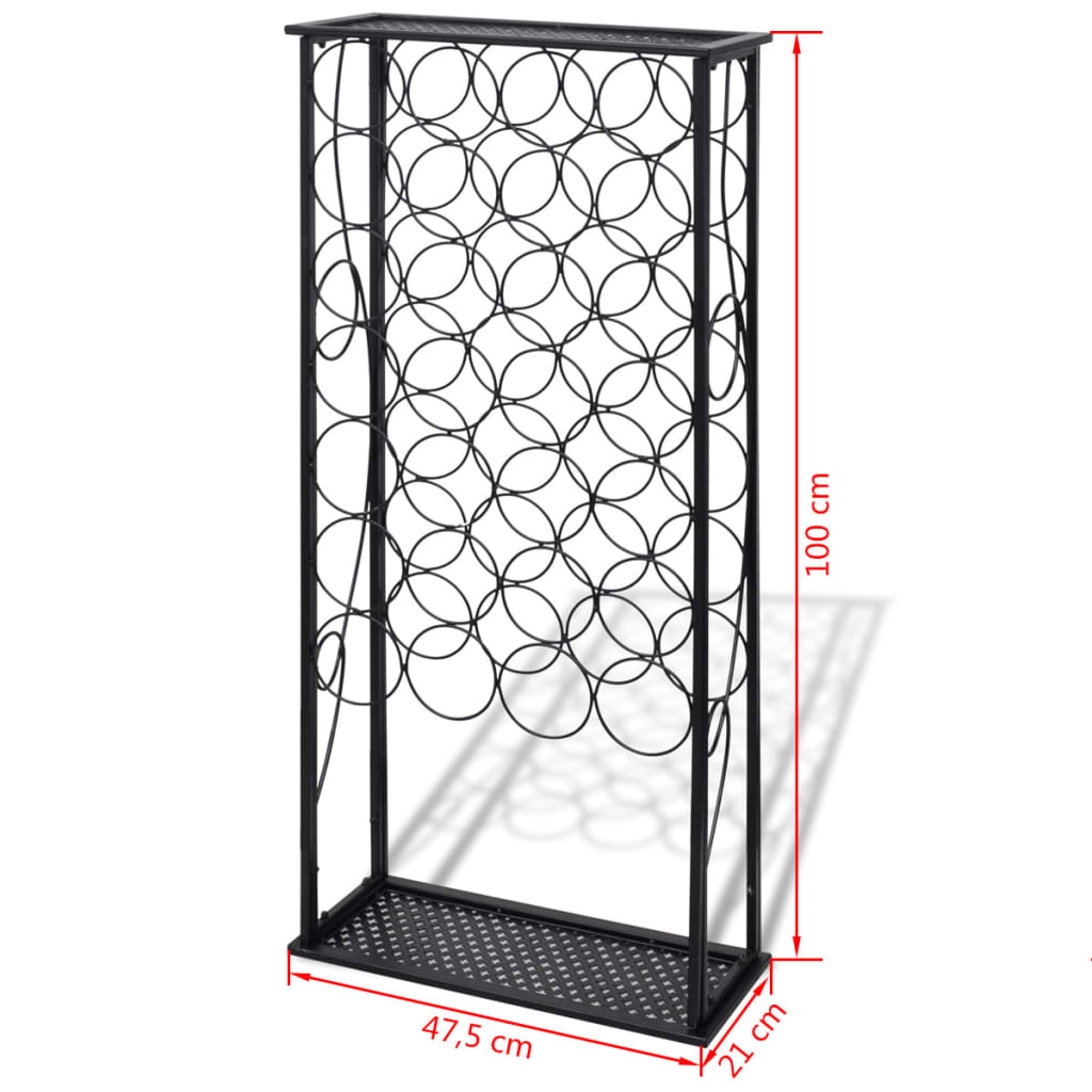 Dieses Flaschenhalter-Standregal wird überall zum Hingucker. Hergestellt aus Schmiedeeisen, ist dieses Weinregal vollständig pulverbeschichtet; dadurch ist es rostfrei und langlebig! Dieses quadratische Weinregal kann bis zu 28 Flaschen Wein aufnehmen. Die Bodenplatte bietet zusätzlichen Platz für weitere Flaschen oder andere Gegenstände. Sein klassisches und elegantes Design verleiht jedem Raum einen Hauch von Romantik. Es ist außerdem ein großartiges Geschenk für alle Weinliebhaber, für Freunde und Bekannte. Dieses schicke Weinregal wird bei Ihnen Zuhause einfach toll aussehen! Achtung: Um ein Umkippen zu vermeiden, sollte dieses Produkt mit der mitgelieferten Wandhalterung gesichert werden.