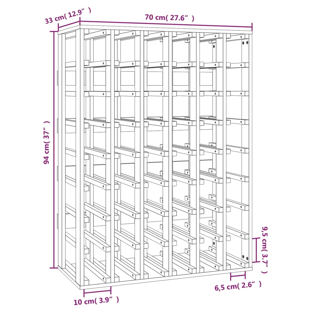In diesem Weinregal aus Holz können Sie Ihre Weine stilvoll aufbewahren, altern lassen und zur Schau stellen! Massives Kiefernholz: Massives Kiefernholz ist ein wunderschönes Naturmaterial. Kiefernholz weist eine gerade Maserung auf und die Aststellen verleihen dem Material seine charakteristische, rustikale Optik.Viel Stauraum: Der Weinhalter bietet reichlich Platz zur Lagerung deiner Weinflaschen. Bis zu 48 Flaschen Wein finden darin den idealen Platz. Robust: Der Holzrahmen sorgt für Robustheit und Stabilität. Achtung:Um das Umkippen zu verhindern, muss dieses Produkt mit der mitgelieferten Wandhalterung gesichert werden. Hinweis:Jedes Produkt wird mit einer Montageanleitung in der Verpackung für eine einfache Montage geliefert.