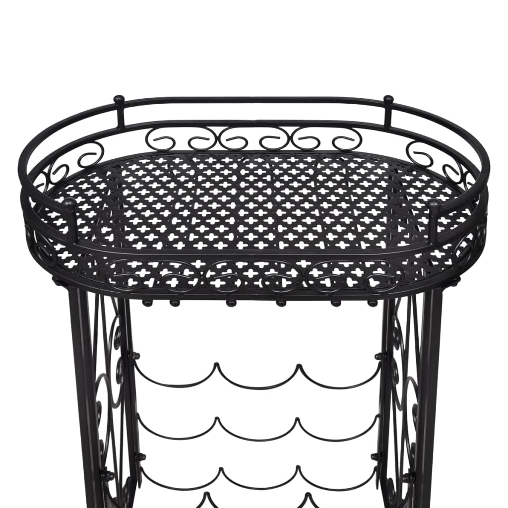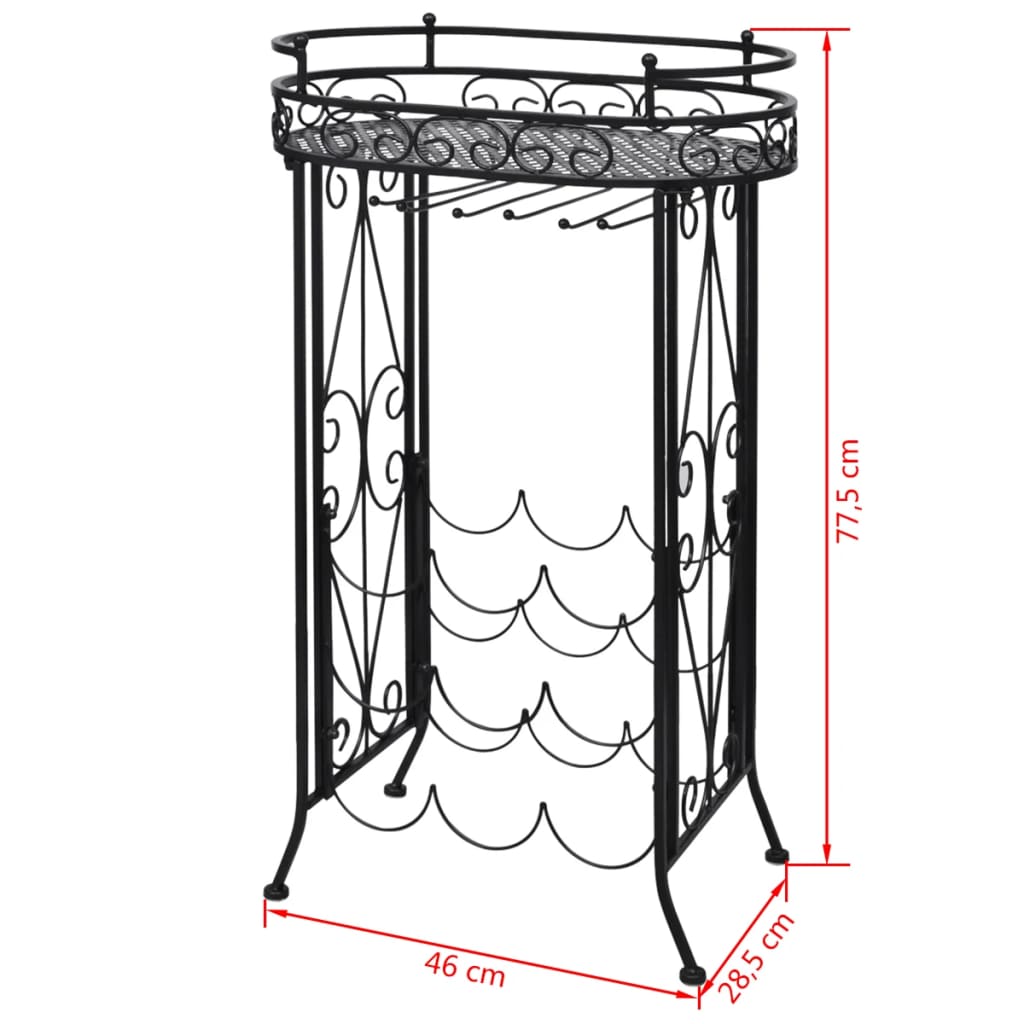 Dieses Flaschenhalter-Standregal wird überall zum Hingucker. Hergestellt aus Schmiedeeisen, ist dieses Weinregal vollständig pulverbeschichtet; dadurch ist es rostfrei und besonders langlebig! Dieses Weinregal kann bis zu 9 Flaschen halten. Die Oberplatte dient als kleiner Serviertisch. Unter der Tischplatte können Sie mehrere Stielgläser zum Aufbewahren einfach aufhängen. Somit wird dieser Flaschen- und Weinglashalter sicherlich eine perfekte Ergänzung neben Ihrem Esstisch. Sein klassischer und eleganter Stil verleiht jedem Raum einen Hauch von Romantik. Es ist außerdem ein großartiges Geschenk für Weinliebhaber, für Freunde und Bekannte. Dieses schicke Weinregal wird bei Ihnen Zuhause einfach toll aussehen! Achtung: Um ein Umkippen zu vermeiden, sollte dieses Produkt mit der mitgelieferten Wandhalterung gesichert werden.