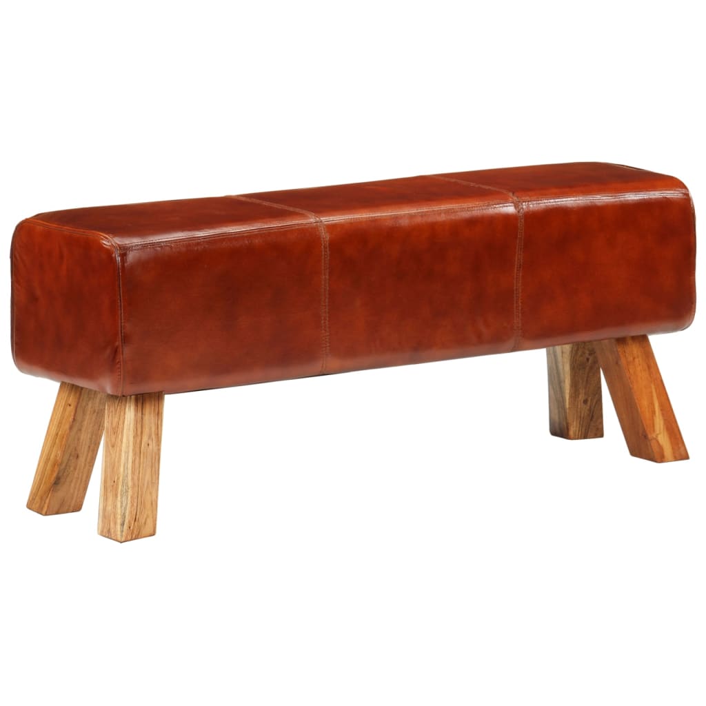 Schaffe eine Vintage-Atmosphäre in deinem Wohnraum mit dieser Bock-Sitzbank aus Echtleder. Glattes Echtleder: Echtleder ist ein zeitloses Naturmaterial. Es kann bei ordnungsgemäßer Pflege und Wartung ein Leben lang halten. Die glatte Oberfläche verleiht ihm einen luxuriösen Look und sorgt gleichzeitig für optimalen Komfort.Holzbeine: Aus massivem Mangoholz gefertigt, verleihen die Beine der Bank Robustheit und Stabilität.Zusätzlicher Komfort: Die dicke Polsterung sorgt für zusätzlichen Sitzkomfort. Gut zu wissen:Farben und Maserungen variieren von Möbelstück zu Möbelstück und machen jedes Stück zu einem Unikat. Die Lieferung erfolgt nach dem Zufallsprinzip, wodurch die Exklusivität und Individualität deines Möbels gewährleistet ist.