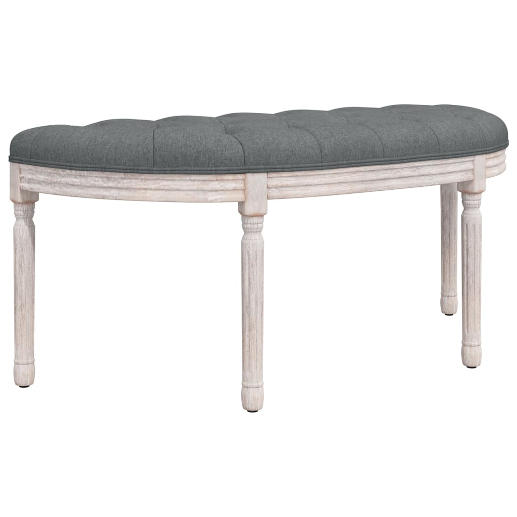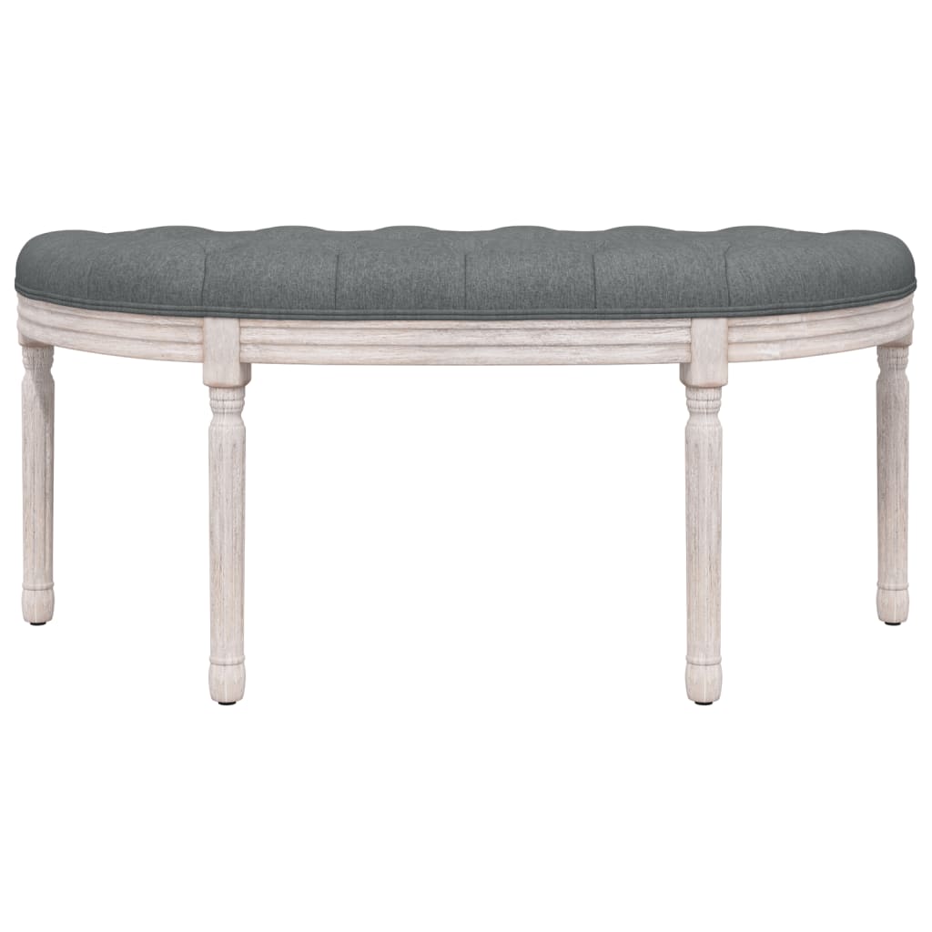Diese Bank ist ein echter Blickfang und bietet einen zusätzlichen Sitzplatz in deinem Wohnraum. Strapazierfähiger Stoff: Diese Flurbank ist mit Stoff bezogen. Das Gewebe hat einen schlichten und sauberen Look und ist gleichzeitig atmungsaktiv und langlebig.Stabiles Sitzmöbel: Die Holzbeine verleihen der Sitzbank ein natürliches und angenehmes Aussehen und sorgen gleichzeitig für Stabilität. Außerdem verhindern die an der Bank angebrachten rutschfesten Filzgleiter Kratzer an deinem Fußboden.Vielseitig einsetzbar: Diese Sitzbank eignet sich hervorragend für Foyers, Eingangsbereiche und Flure; sie kann aber auch als bequeme Klavierbank verwendet werden. Die Bank kann auch Fußhocker dienen, auf dem man seine Füße nach einem langen Tag ausruht. Sie passt fabelhaft zu Sofas und Chaiselongues. Darüber hinaus bietet sie ausreichend Platz, auf dem man Decken, Zeitschriften, Bücher ablegen kann.Französischer Vintage-Stil: Die halbrunde Sitzbank im französischen Stil hat eine schöne Sitzfläche mit Polsterknöpfen. Dieses Möbelstück bringt rustikalen Glamour in deinen Wohnraum. Die dicke Polsterung mit Schaumstoff sorgt für ein weiches und entspanntes Sitzgefühl.