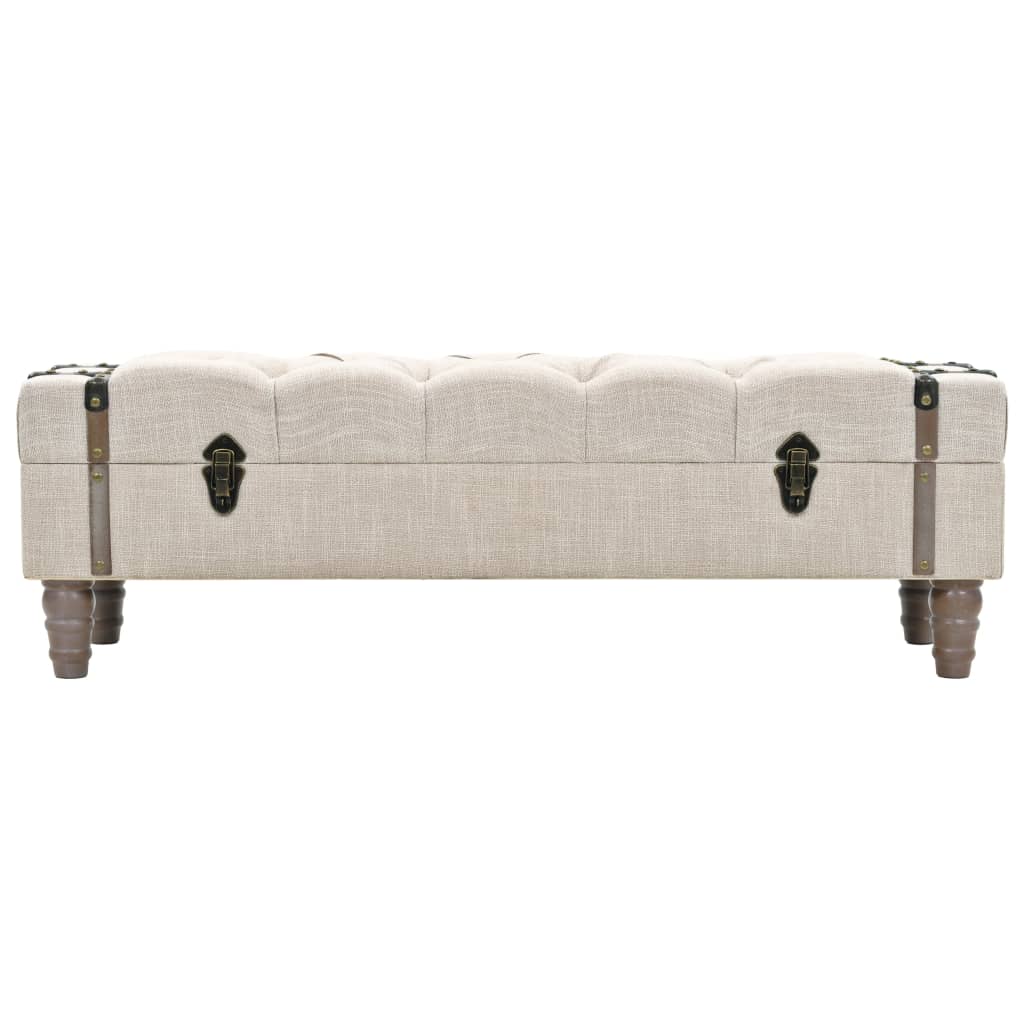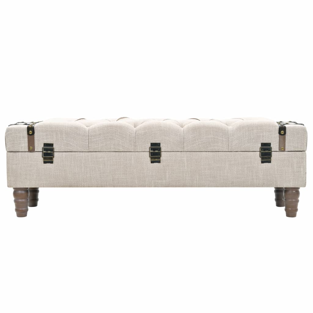 Verleihen Sie Ihrem Interieur mit unserer Aufbewahrungsbank einen Hauch von Klassik. Die Aufbewahrungsbank ist aus massivem Tannenholz gefertigt. Sie hat einen gepolsterten Sitz, der mit einem modernen Stoff gepolstert ist und robuste Stahlbeine hat. Sie bietet im Inneren viel Platz, um eine Vielzahl von verschiedenen Gegenständen außer Sichtweite, aber dennoch in Reichweite, aufzubewahren. Dank des robusten Griffs lässt sich die Aufbewahrungsbank auch leicht bewegen und in jedem Raum platzieren. Die Montage dieses Produkts geht leicht von Hand.